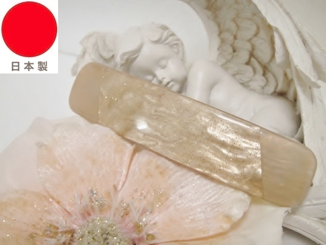 ♪ 新品 バレッタ 日本製『高品質/アセチ/ロングサイズ/レクタングル/バイデザイン/パール&ラメパールマーブルベージュ』♪