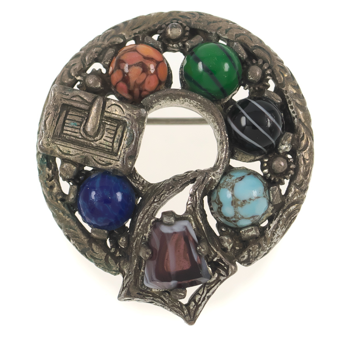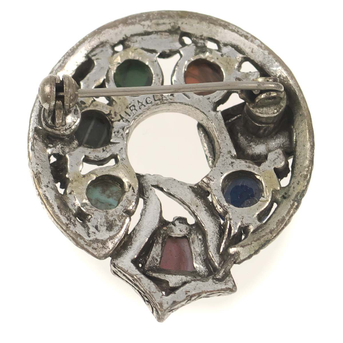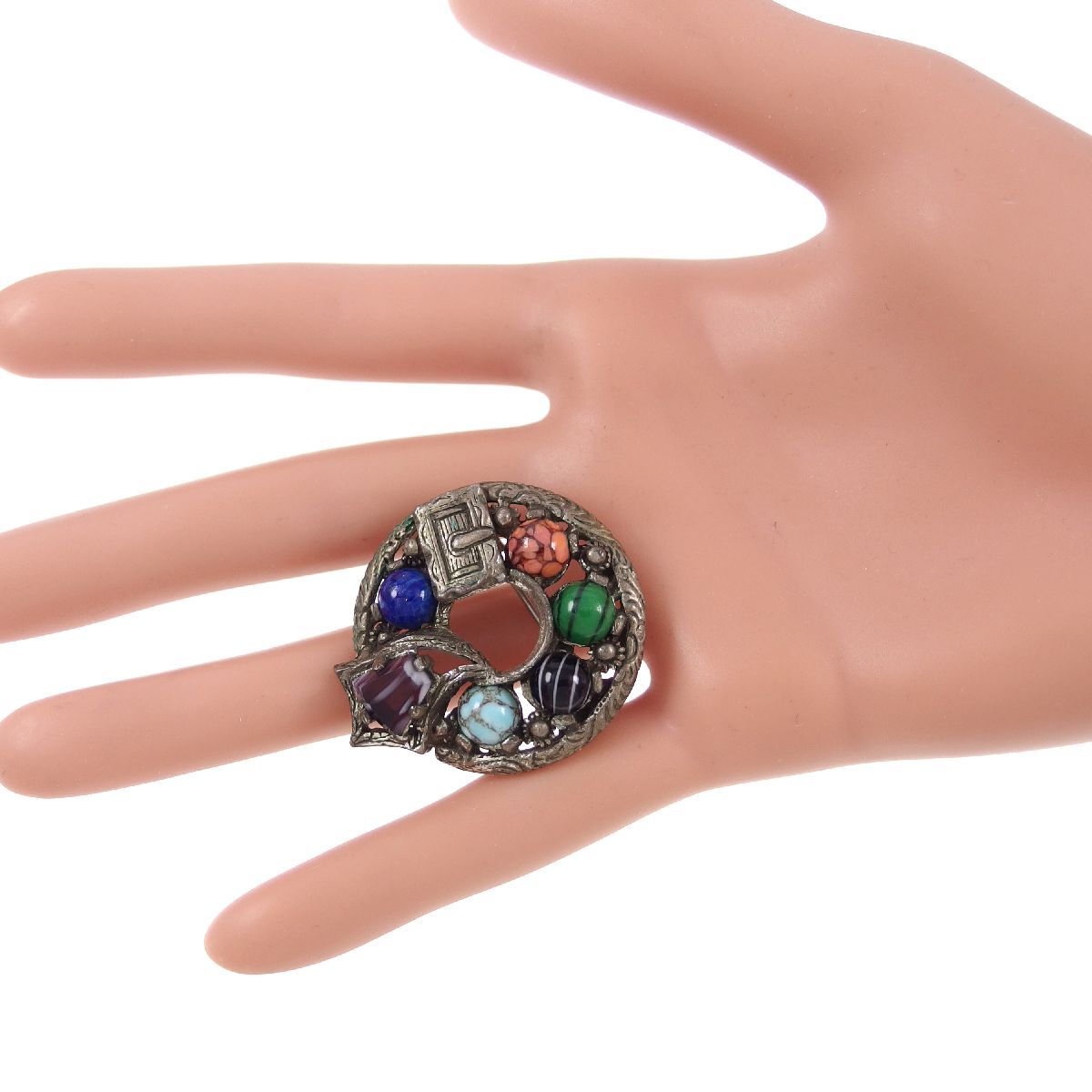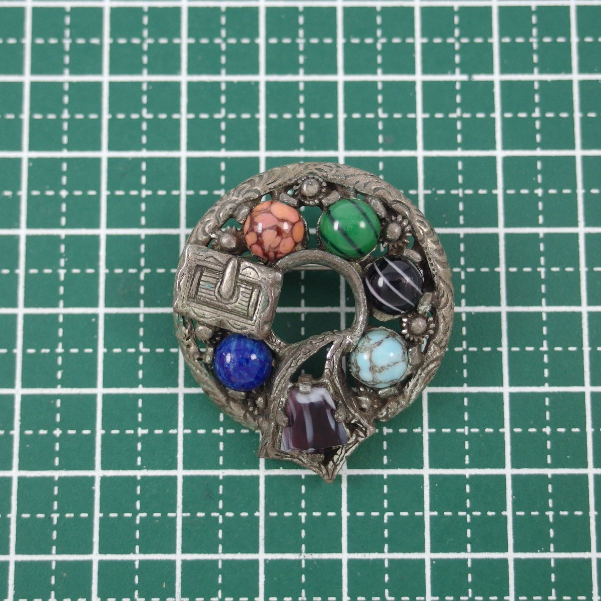 UK3372◆【MIRACLE】◆ ラウンド マルチカラー マーブルストーン 色石 ◆ ケルト ミラクル 英国 ◆ ヴィンテージブローチ