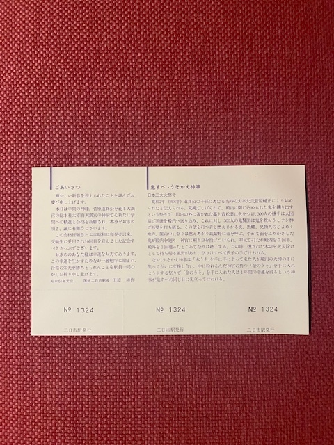 太宰府天満宮 参拝記念入場券 昭和61年 (管理番号48-5)