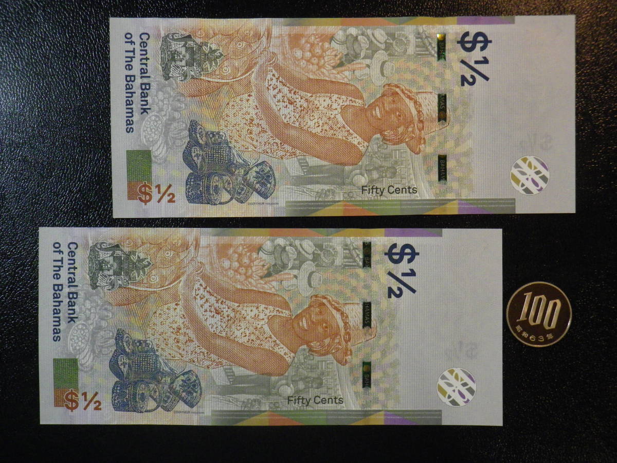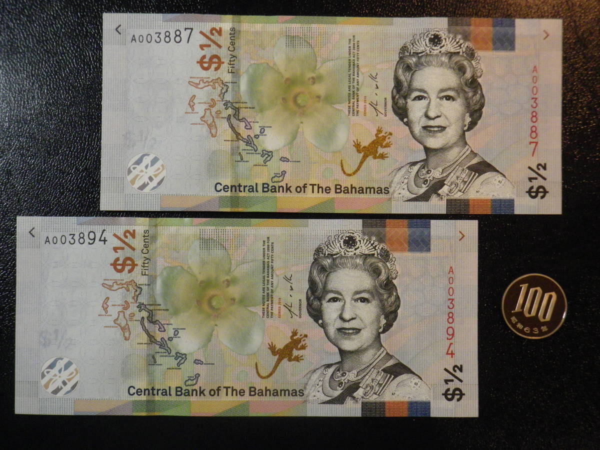 バハマ 2019年 1/2 ドル Prefix A 2枚組 未使用