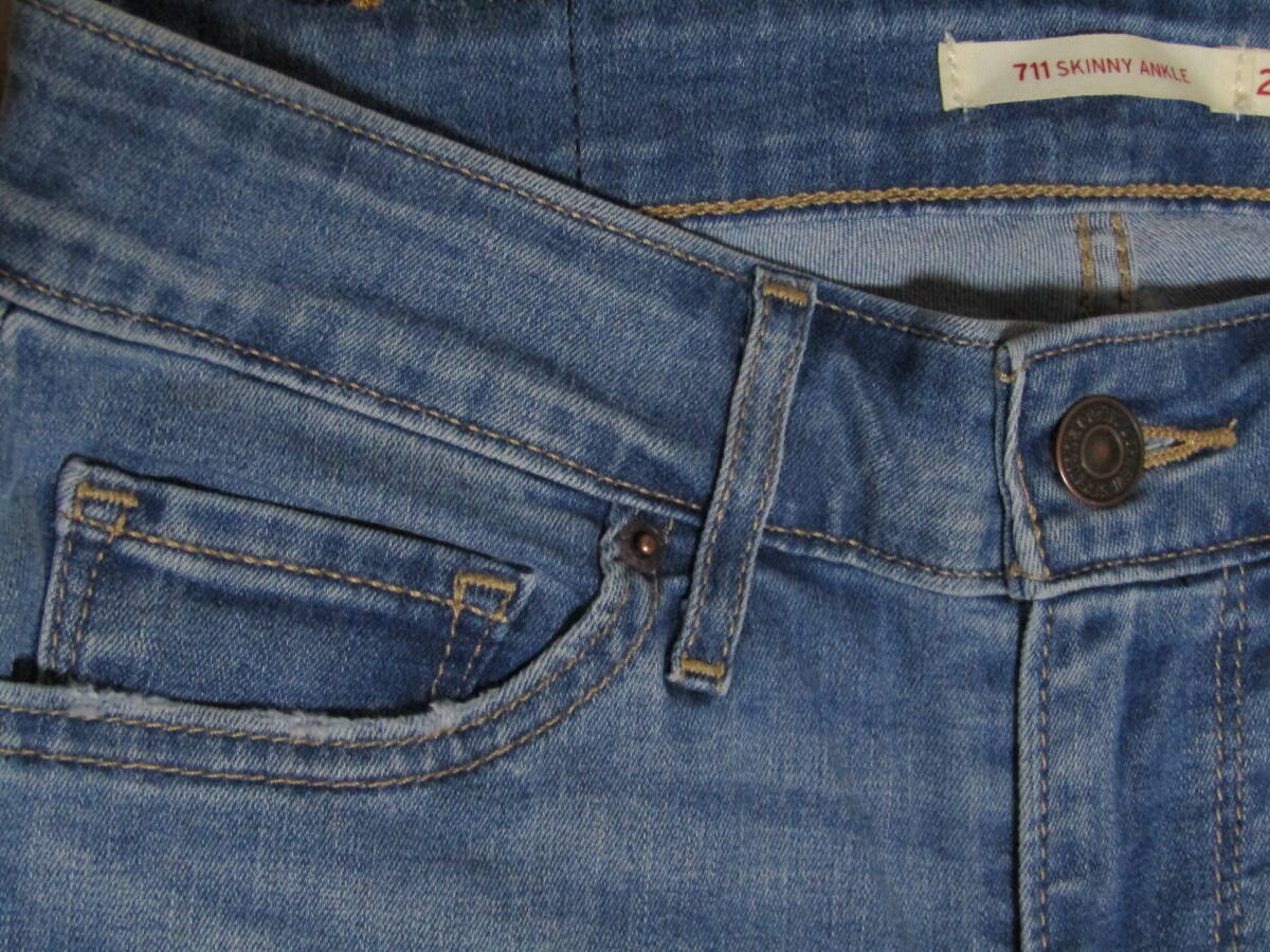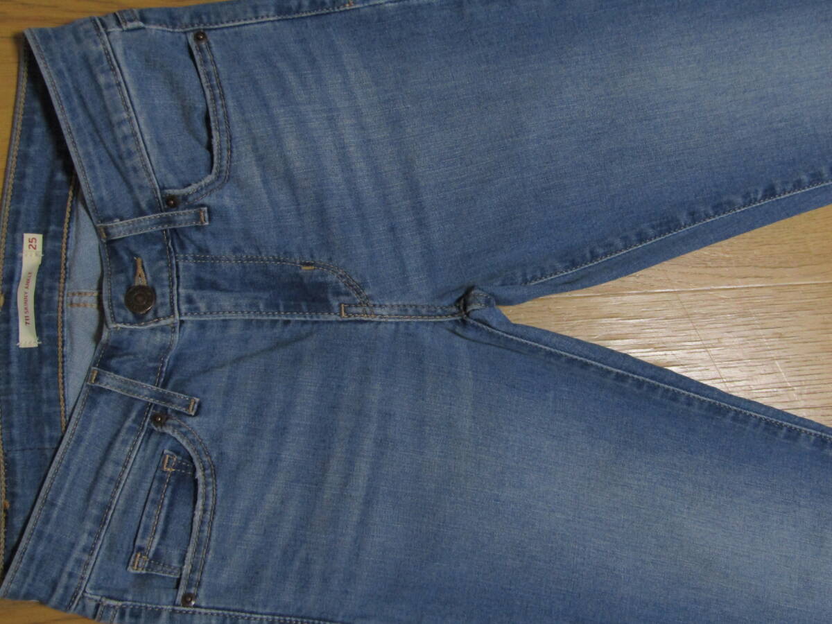 状態良好 爽やかライトブルーのカッコいい色落ち 中間色仕様 ストレッチ有 リーバイス 711 SKINNY ANKLE ダメージ加工 25inch レディースを出品させて頂きます。