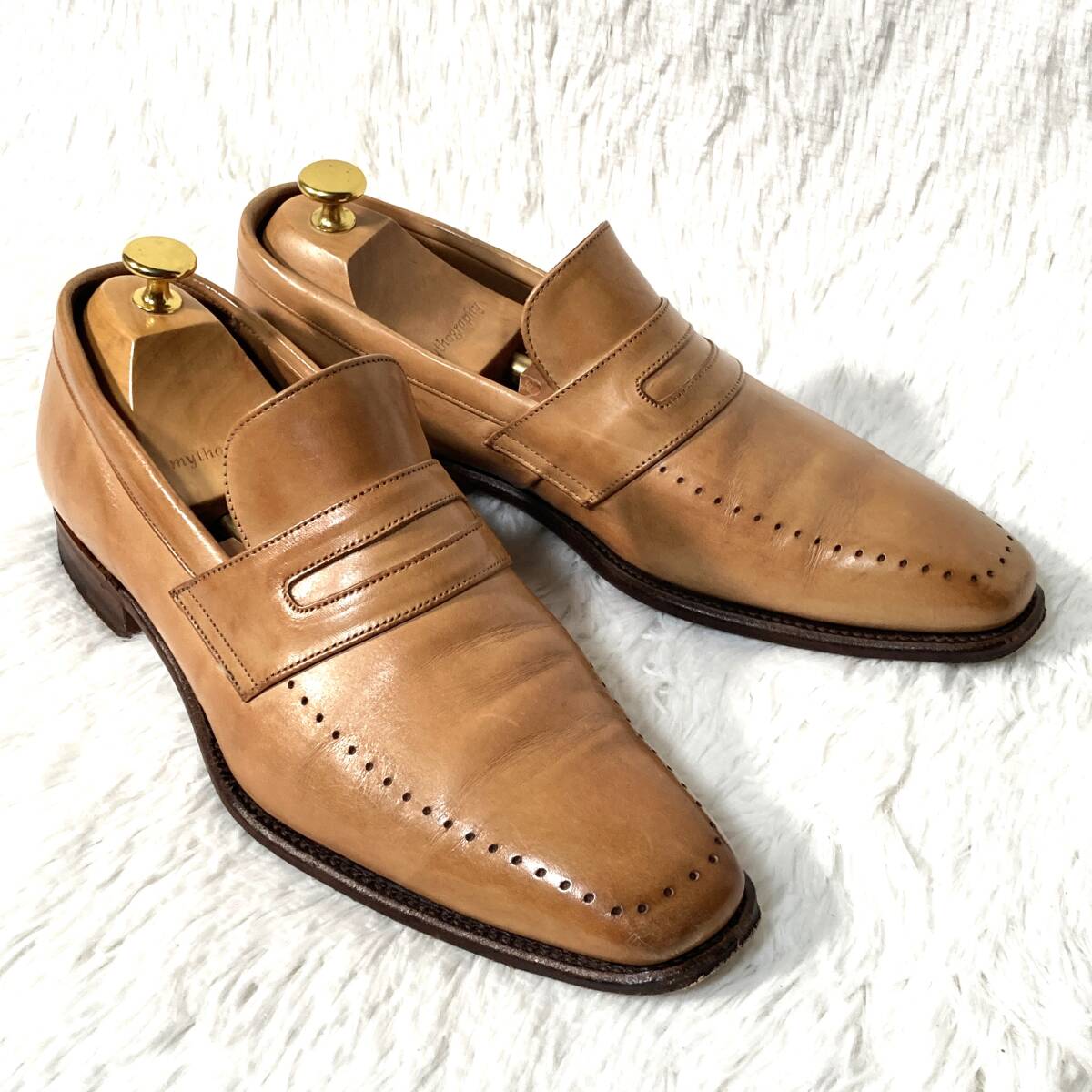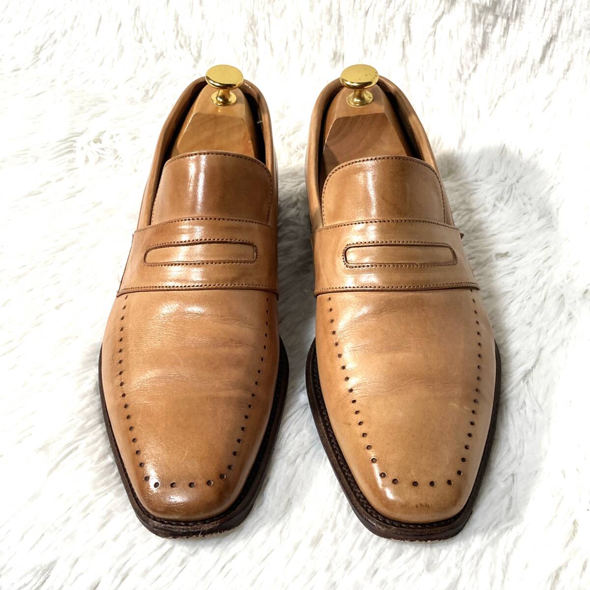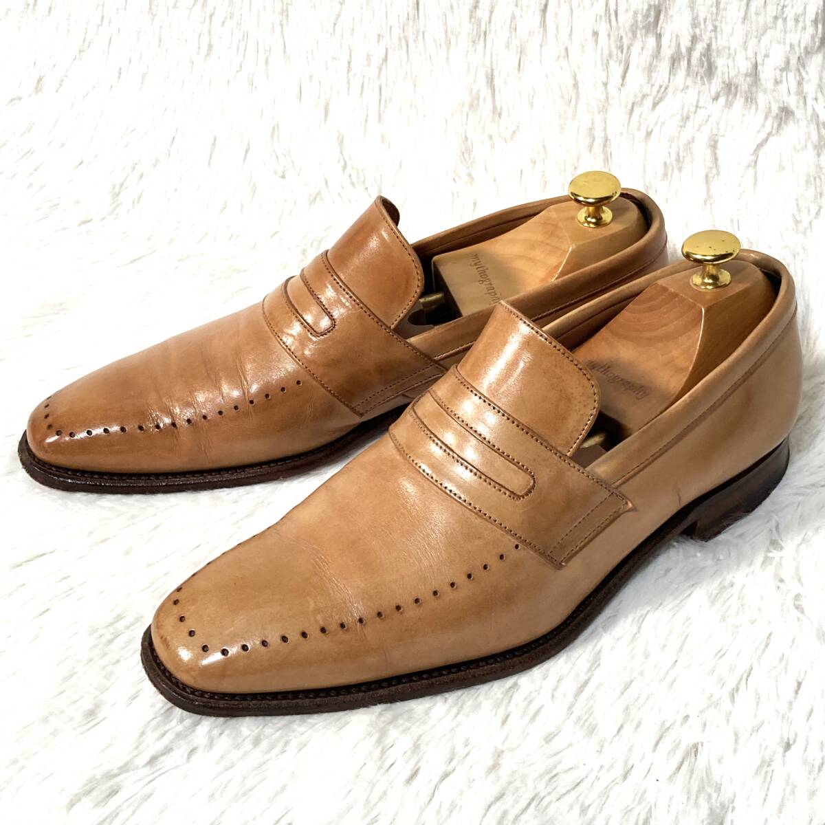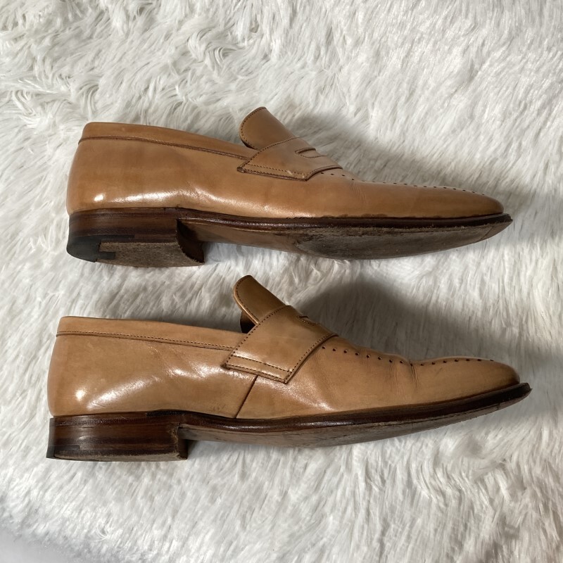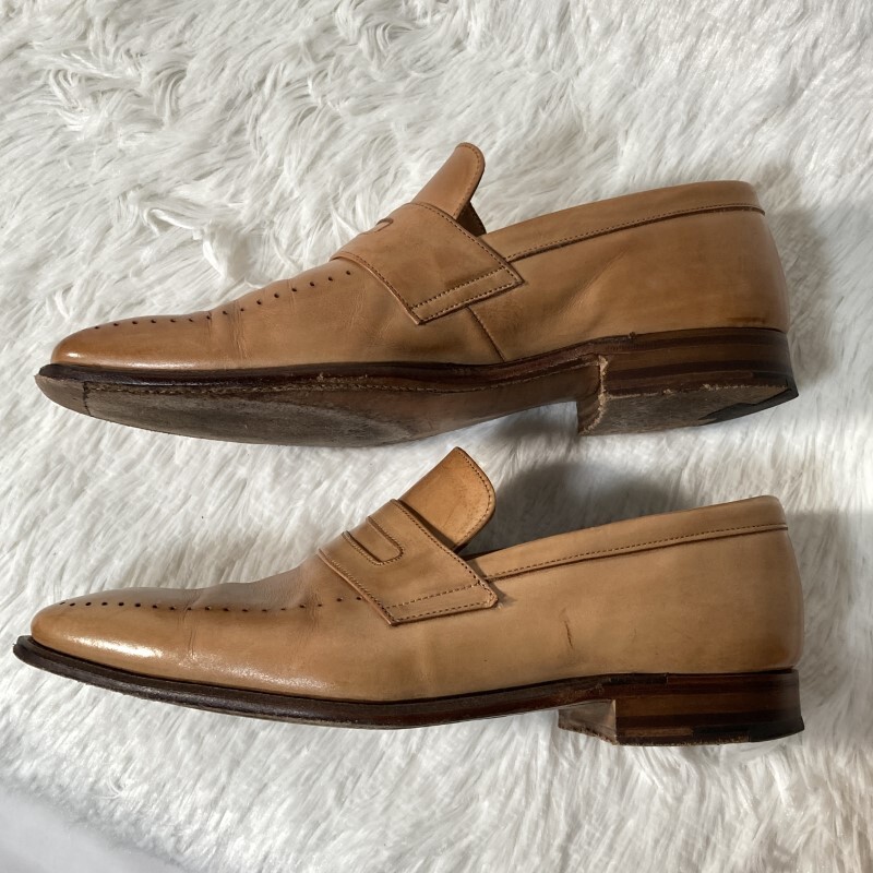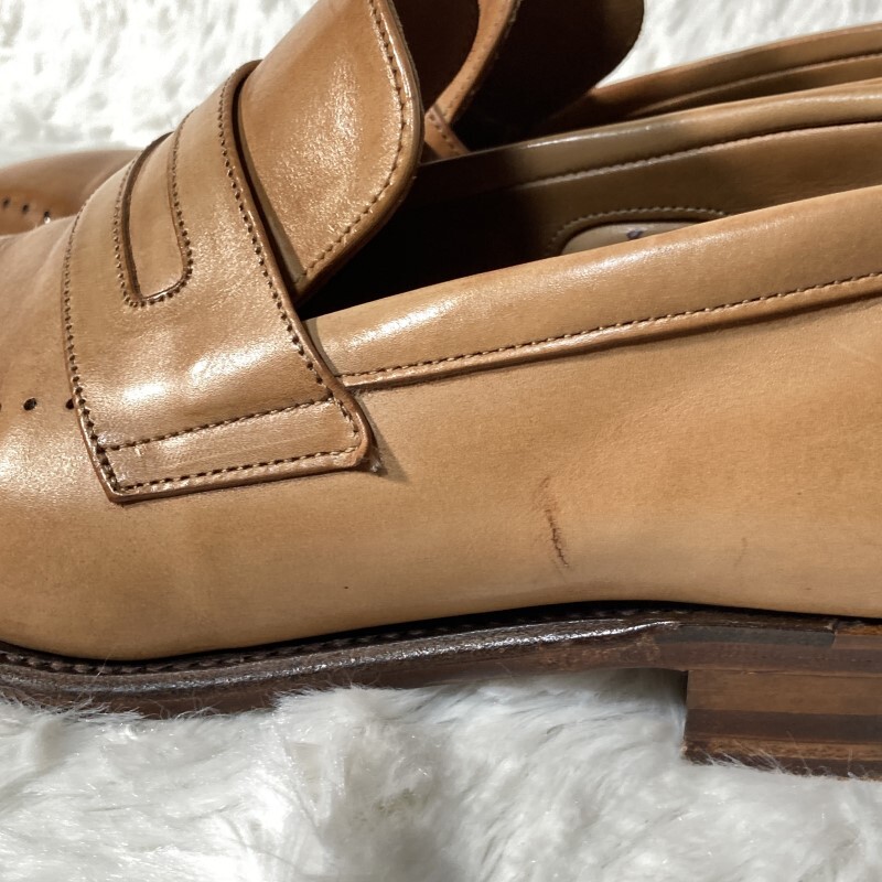 ポールスミス×チーニー★英国製★パンチングUチップ コインローファー ペニーローファー スリッポン シューズ ベージュ 8 約26.5 CHEANEY