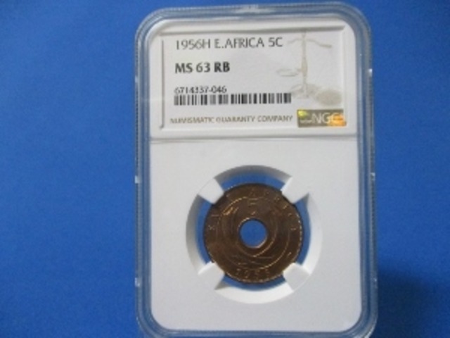 東アフリカ 5セント青銅貨☆1956年/未使用/NGC MS63/本物保証