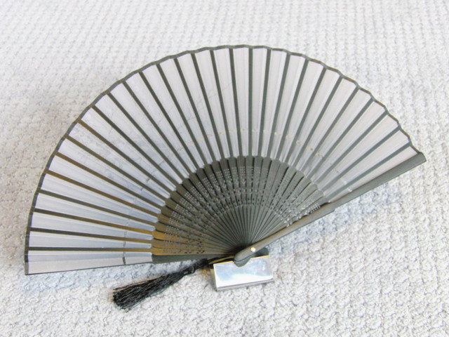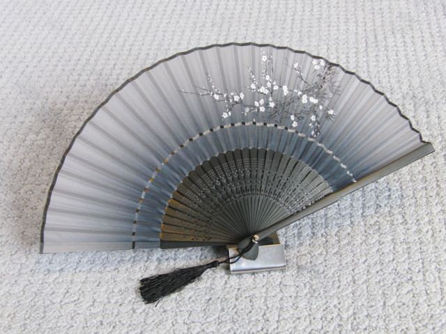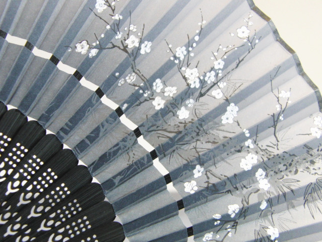 扇子 梅 シルク グレー 親骨ブラック 二段 穂収納袋付き 名入れ無料  送料無料 プレゼントに