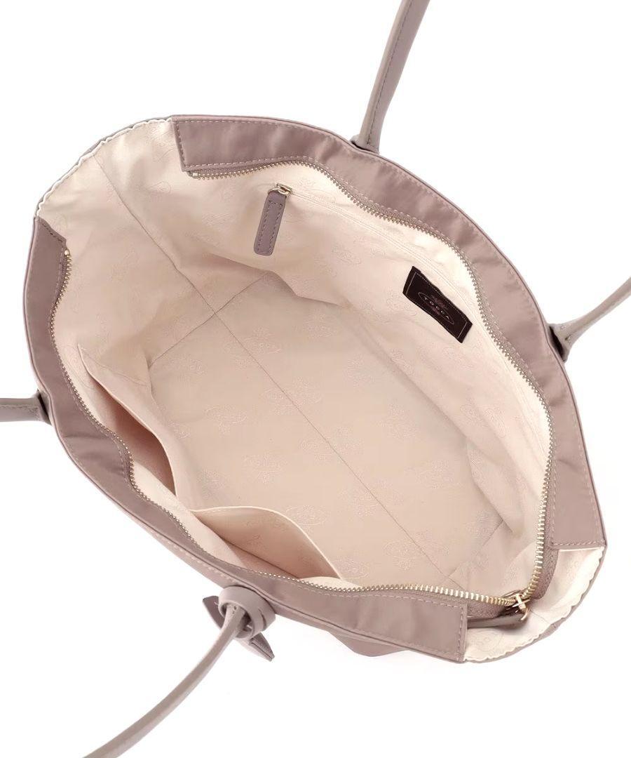 キーチャームやロゴ・ファスナーなどのメタルのアクセントが、TOCCAらしいノーブルでほんのり甘目のたたずまい。ハンドルの根革部分には、「勝利」「栄光」を意味するとされるローレルの葉をかたちどったデザインディテールもプラスしました。