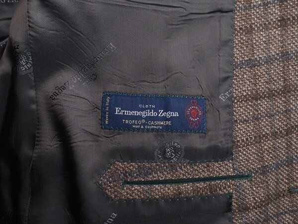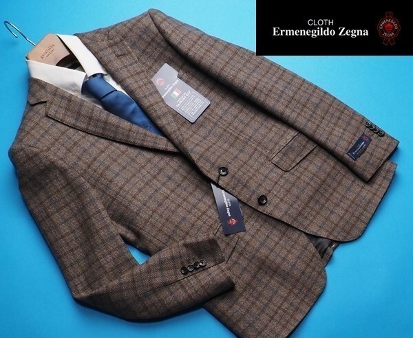 新品12.9万円 大手百貨店扱い 秋冬『Ermenegildo Zegna ゼニア Trofeo Cashmere 伊生地』カシミヤ混フランネル ジャケットA6茶(D) 3053060