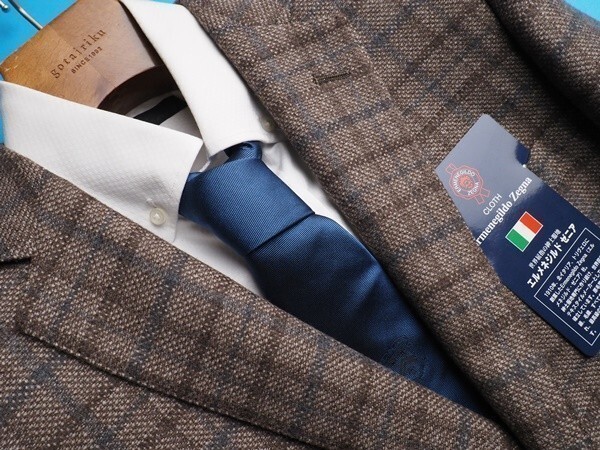 ゼニアの定番生地の1つ「トロフェオ」は、繊維の平均直径が16ミクロン(Super130'S)というオーストラリア産のスーパーファインメリノウールをしっかり撚って織り上げられた生地です。