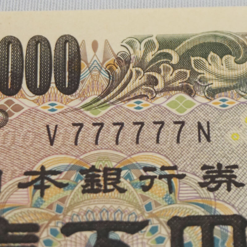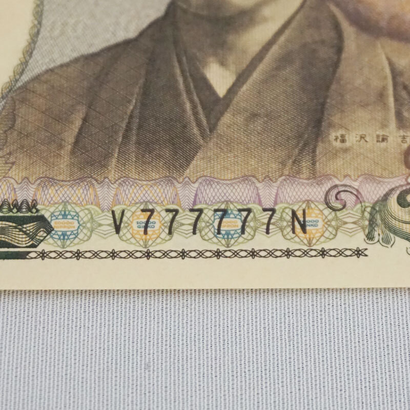【希少・美品】1万円札 ゾロ目 V777777N 福沢 諭吉 日本銀行券 ピン札 プレミア 紙幣 ラッキーセブン 送料無料!