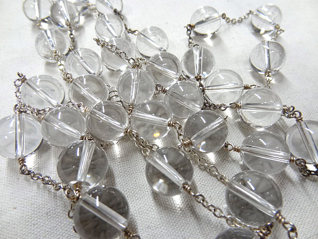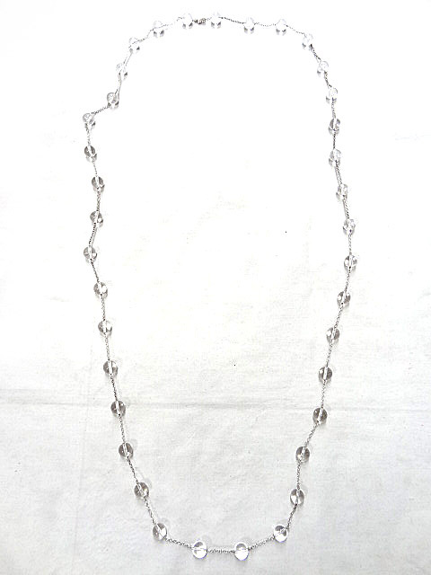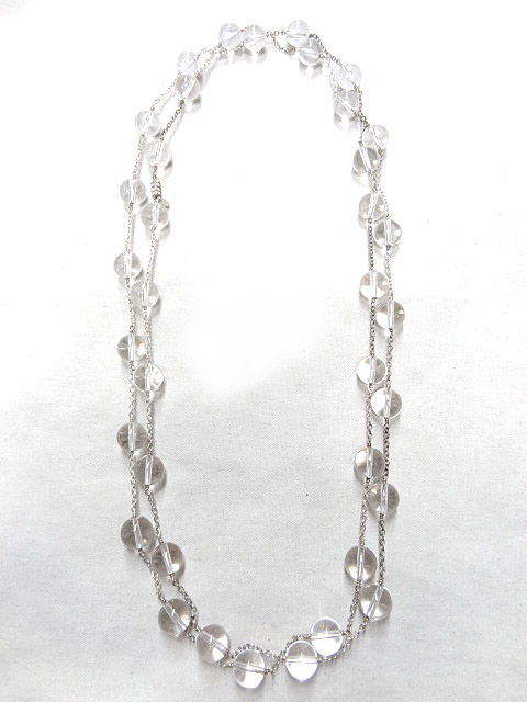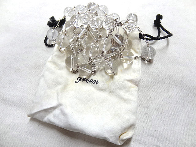GREEN グリーン クリスタル 数珠 ロング ネックレス 透明 シースルー チョーカー 2重 アクセサリー クリア 石 ストーン デザイナー レア