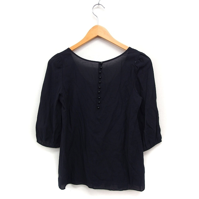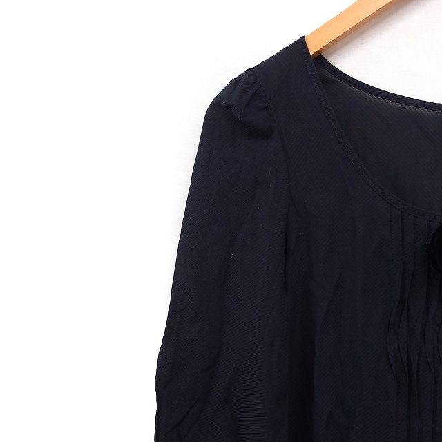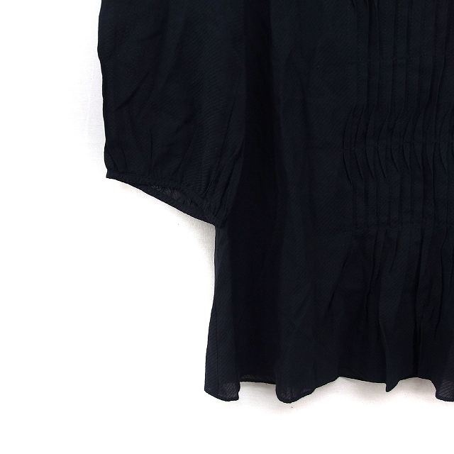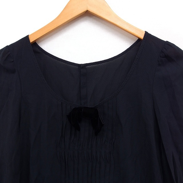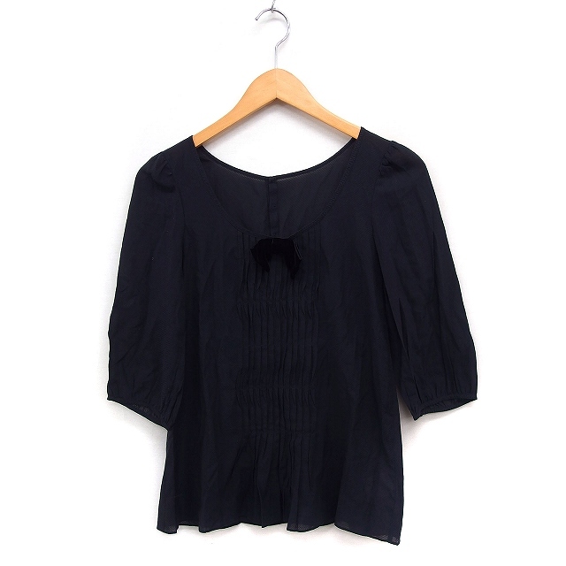 ジルスチュアート JILL STUART リボン付き 五分袖 ブラウス ラウンドネック ピンタック 無地 S ブラック 黒 /FT23 レディース