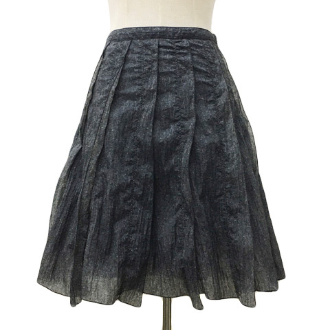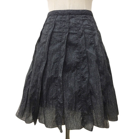 ケーティー キヨコ タカセ K.T KIYOKO TAKASE スカート フレア 膝丈 ナイロン 総柄 7 黒 グレー ブラック レディース