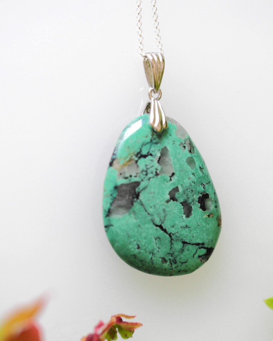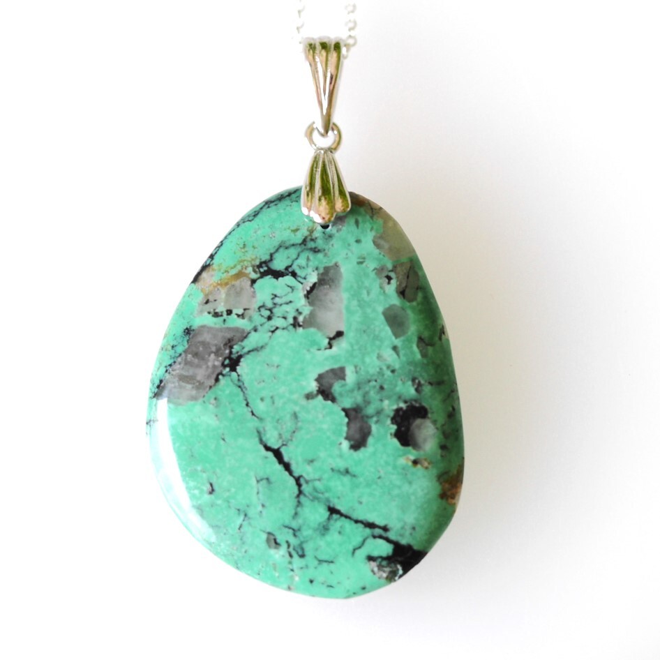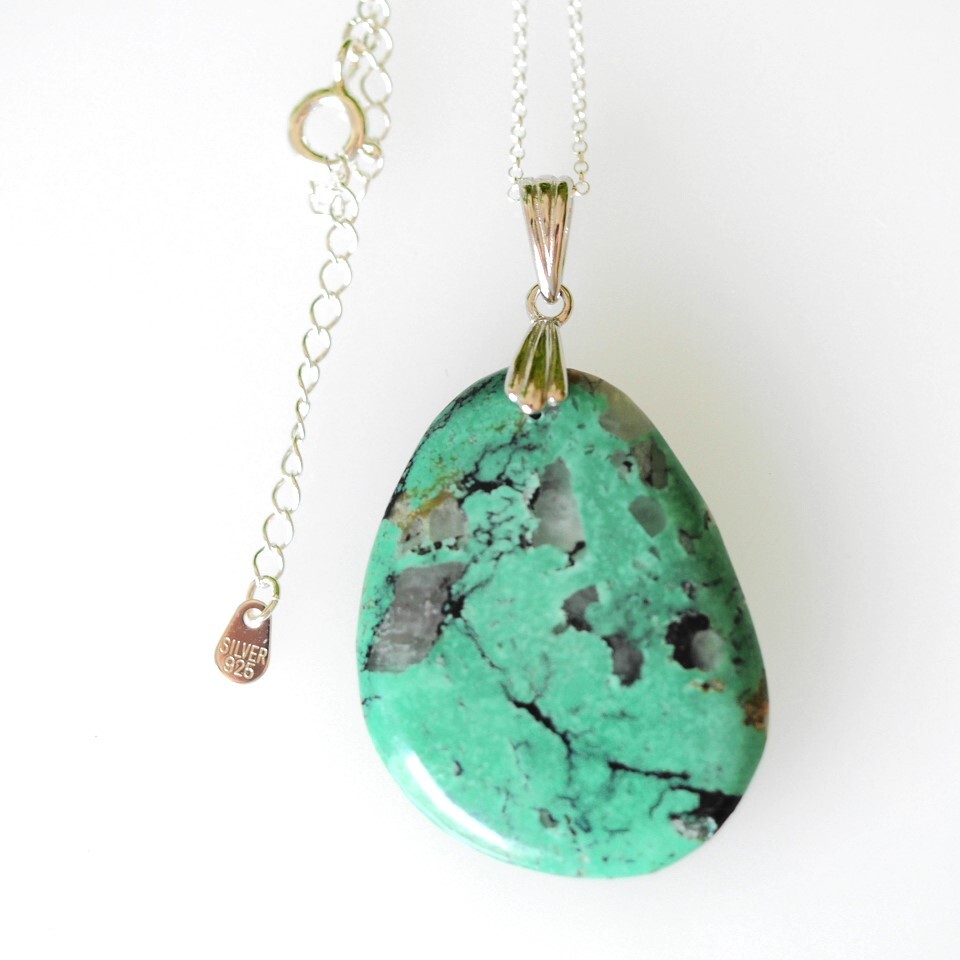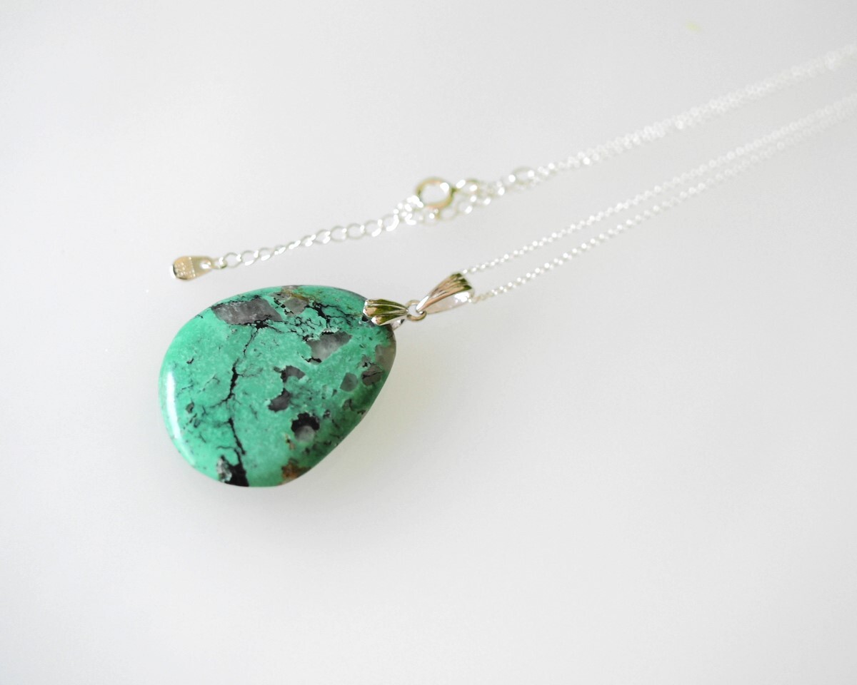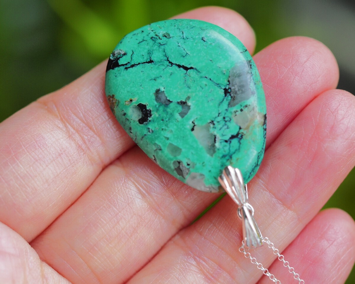 天然トルコ石 水晶 共生 SV ペンダントトップ ネックレス
