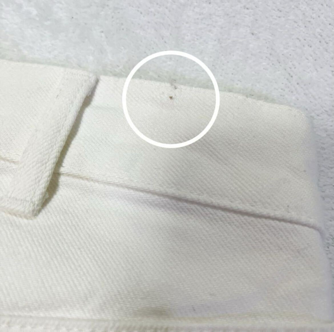 未使用品ですが、後ろ側のウエスト部分に保管シミがついていました。定価より1万円以上お安くしていますので、気にならないよ!って言う方にお譲りしたいです♪