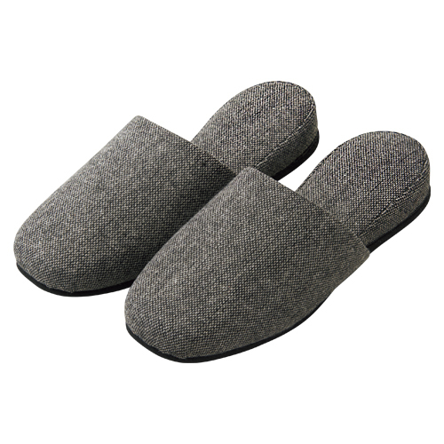 暖かみのあるポリエステル素材でワントーンに仕上げられたスリッパは、家庭からオフィスまで場所を選ばず使えるデザイン。