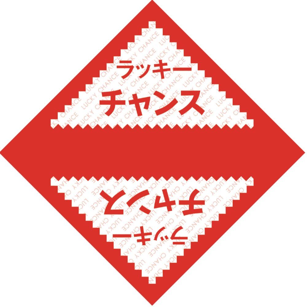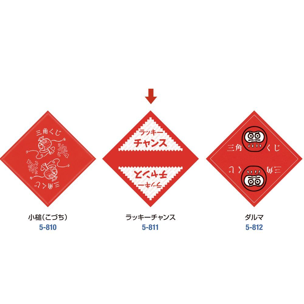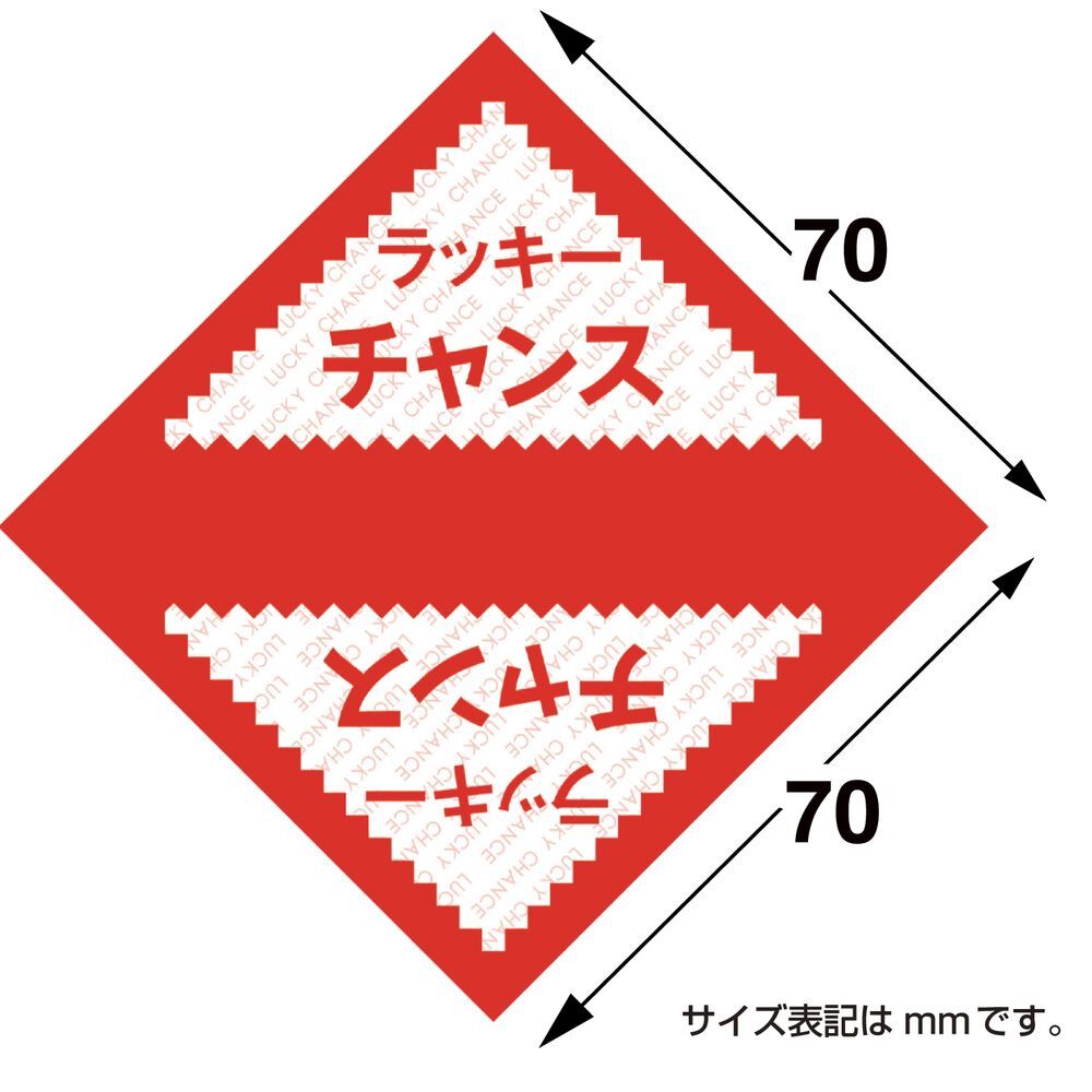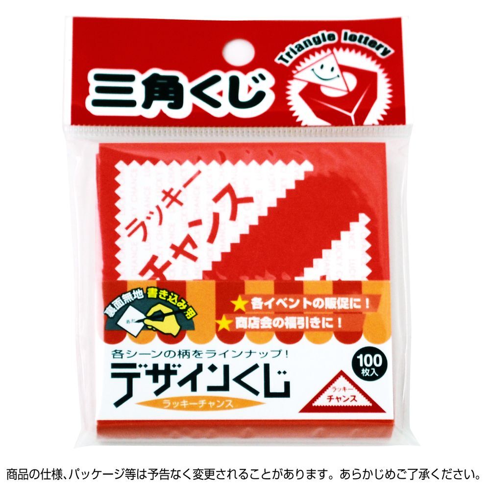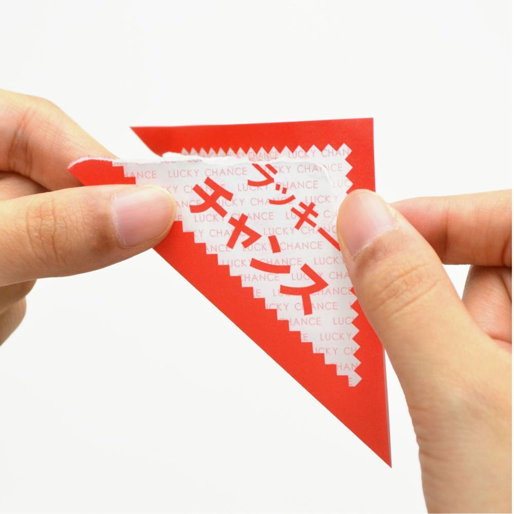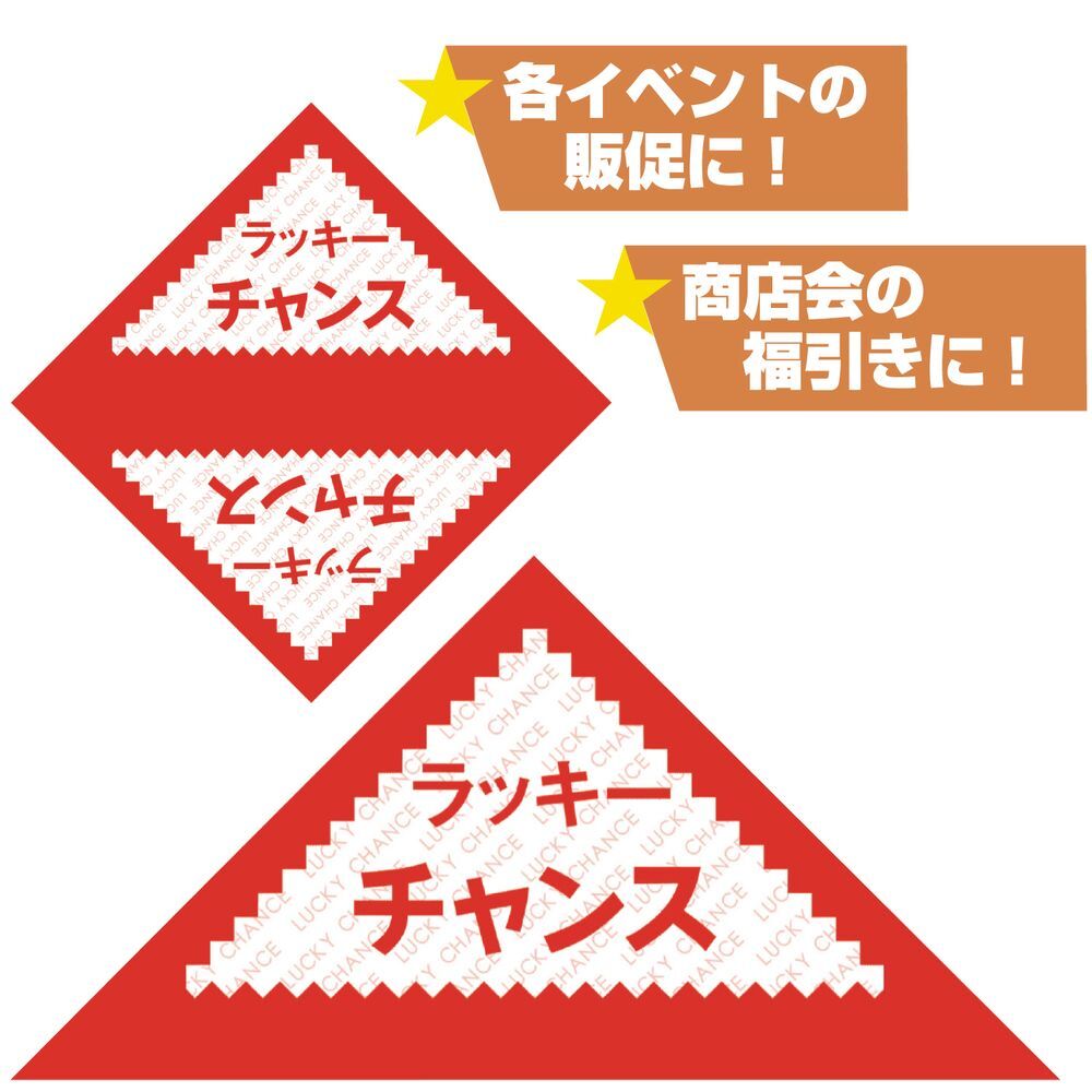 ラッキーチャンスの文字が入ったデザインの赤い三角くじ です。