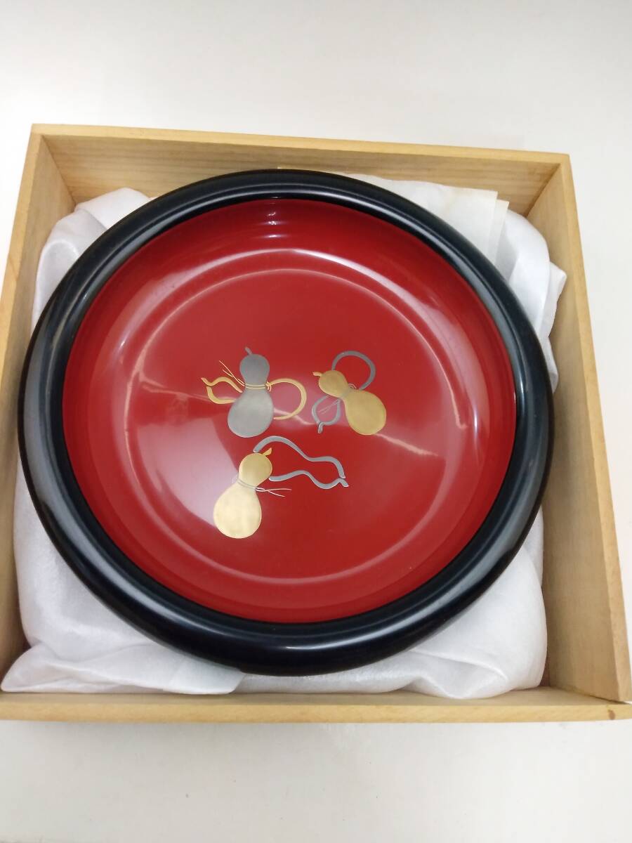 0519-0009  中古★茶道具★漆芸★菓子器 瓢箪 漆盆 漆皿 盆 菓子器 菓子盆 黒塗 縁起物 皿 漆塗