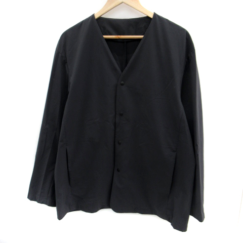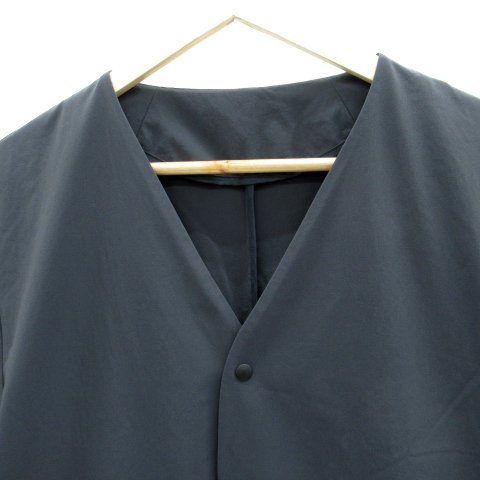 グリーンレーベルリラクシング ユナイテッドアローズ green label relaxing ノーカラージャケット ミドル丈 薄手 L チャコールグレー