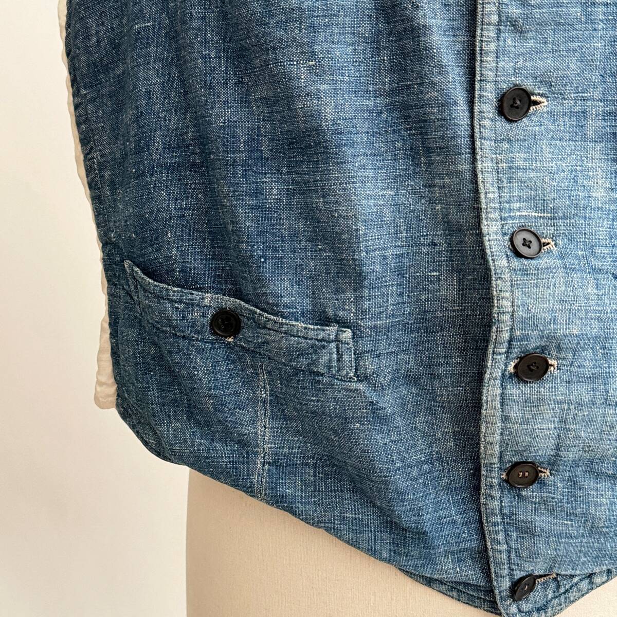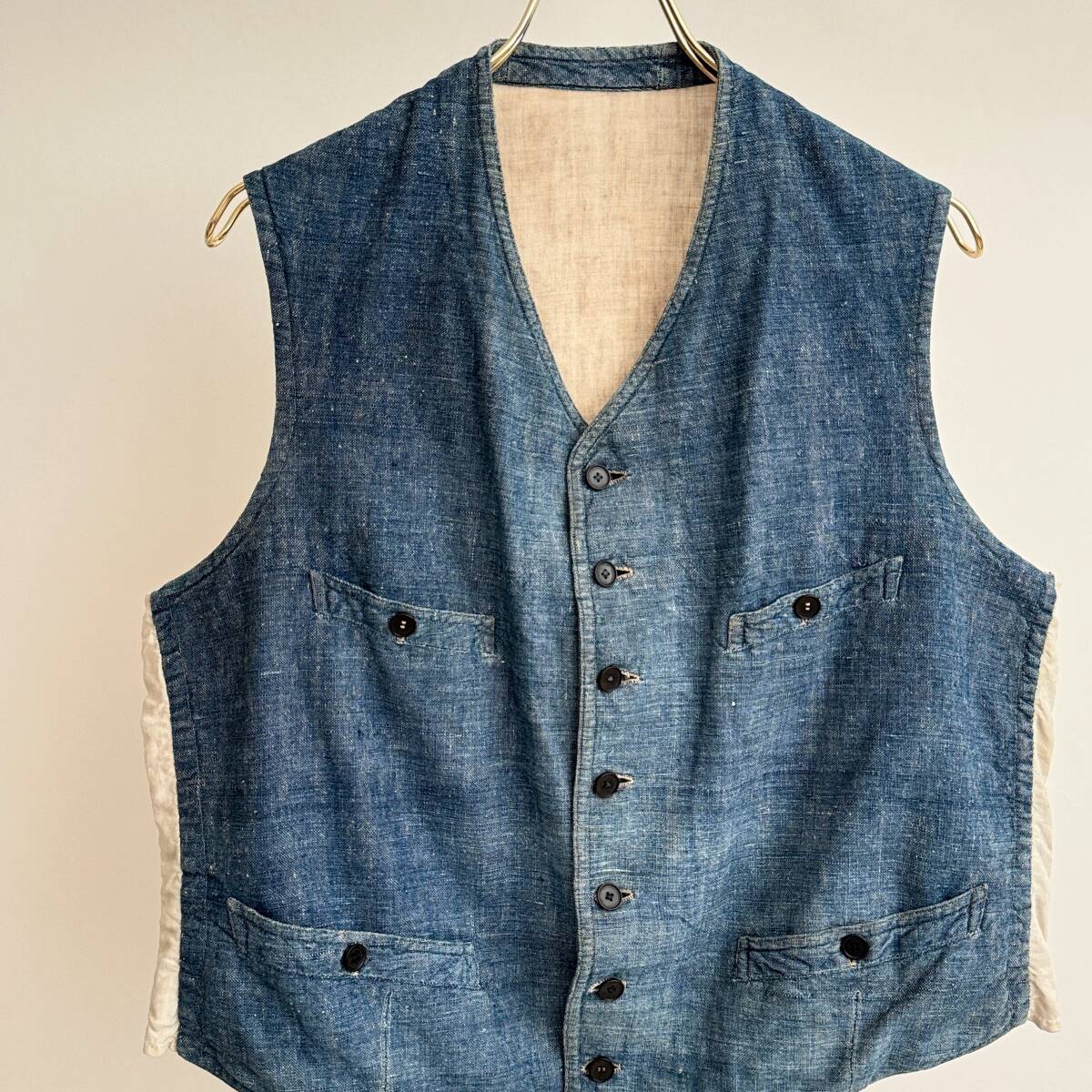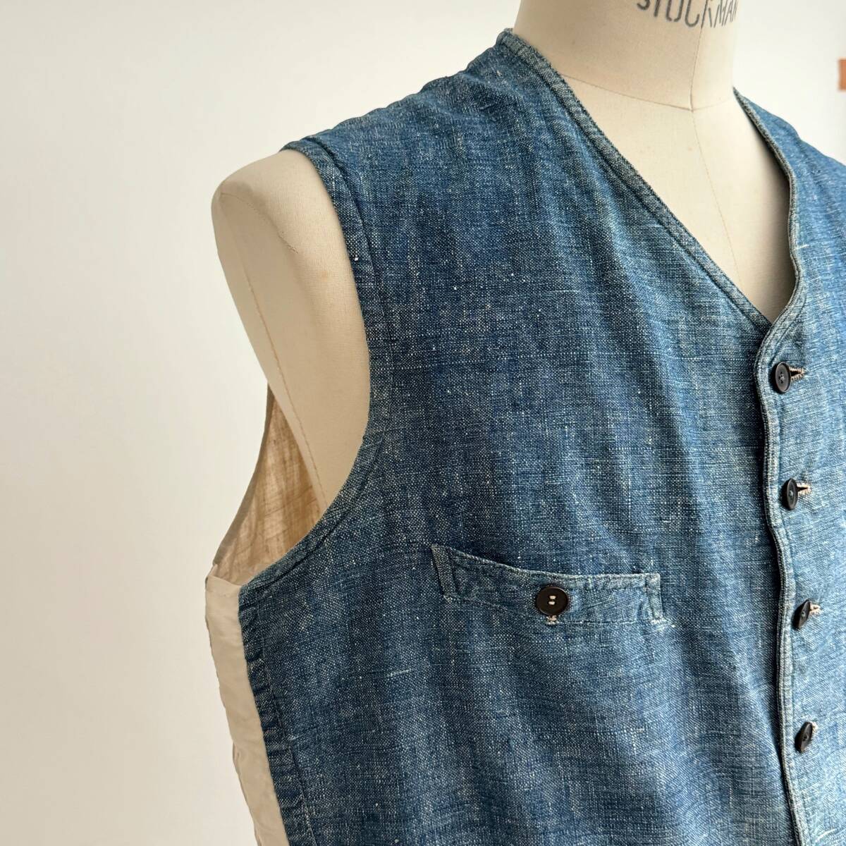 希少《 Indigo Linen / French Vintage 》20s 30s 40s【 フレンチ ビンテージ インディゴ リネン ベスト ジレ フランス製 アンティーク 】