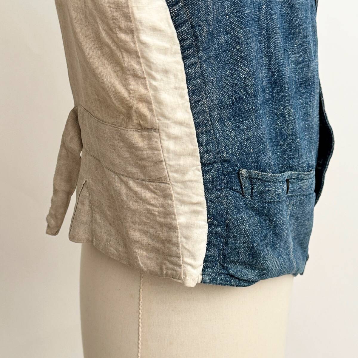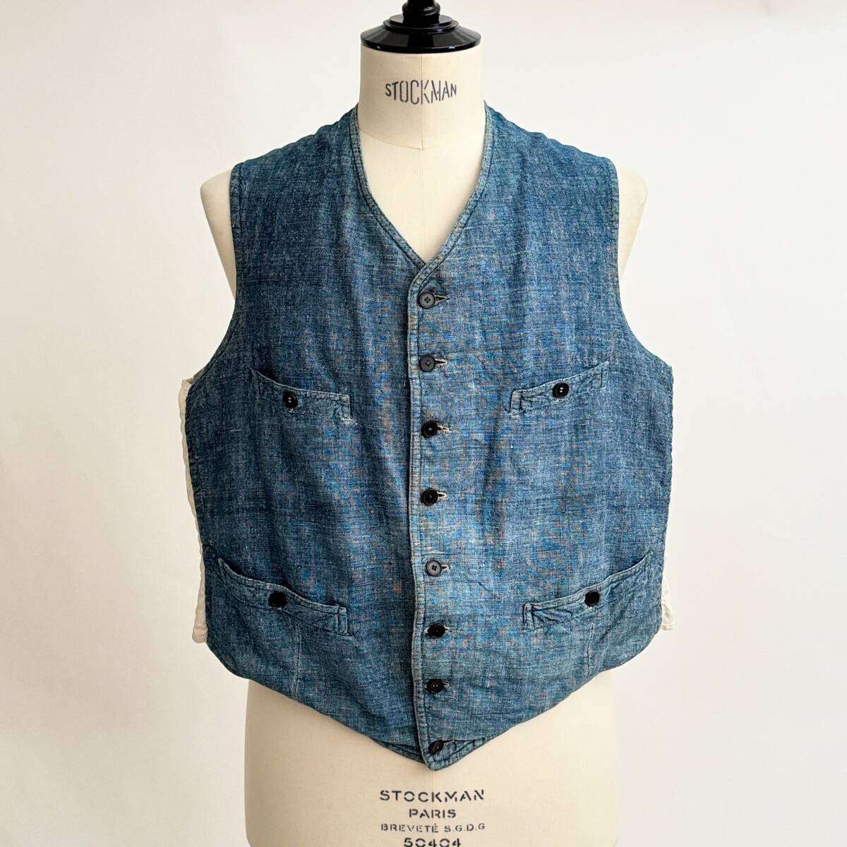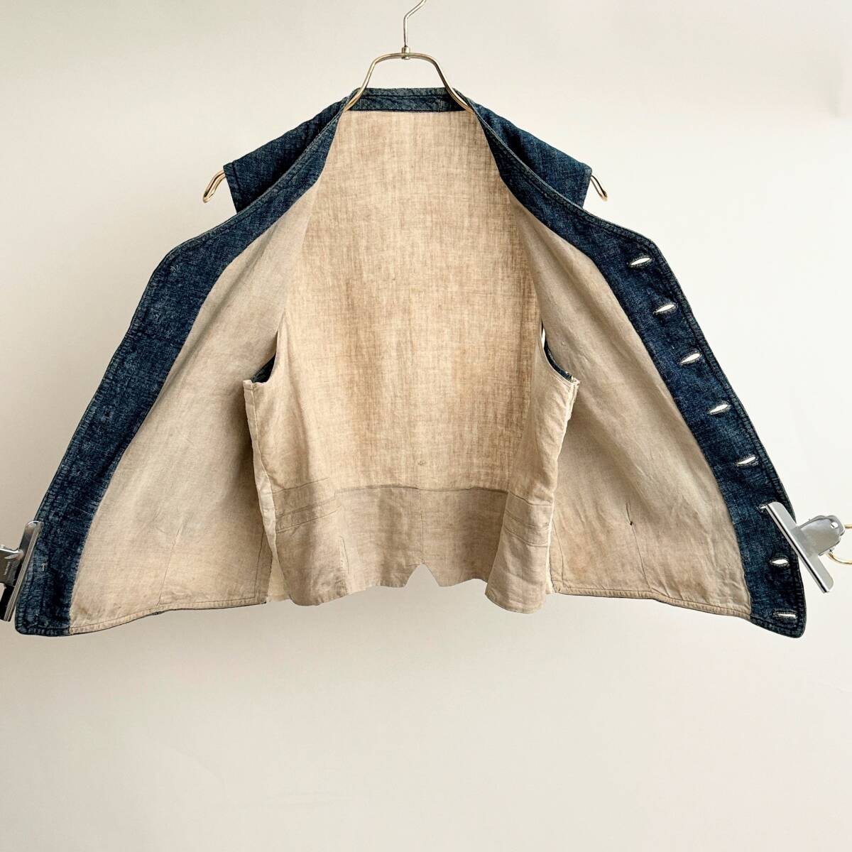 希少《 Indigo Linen / French Vintage 》20s 30s 40s【 フレンチ ビンテージ インディゴ リネン ベスト ジレ フランス製 アンティーク 】