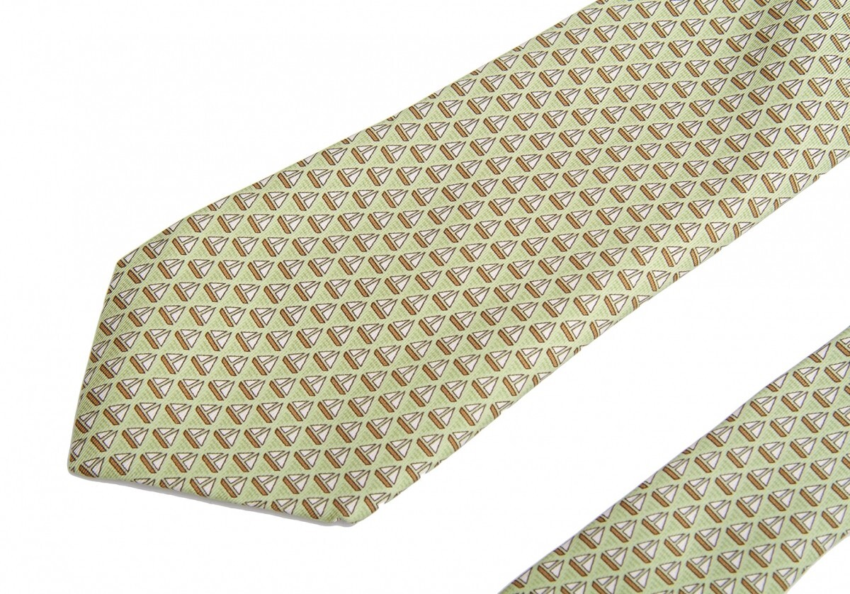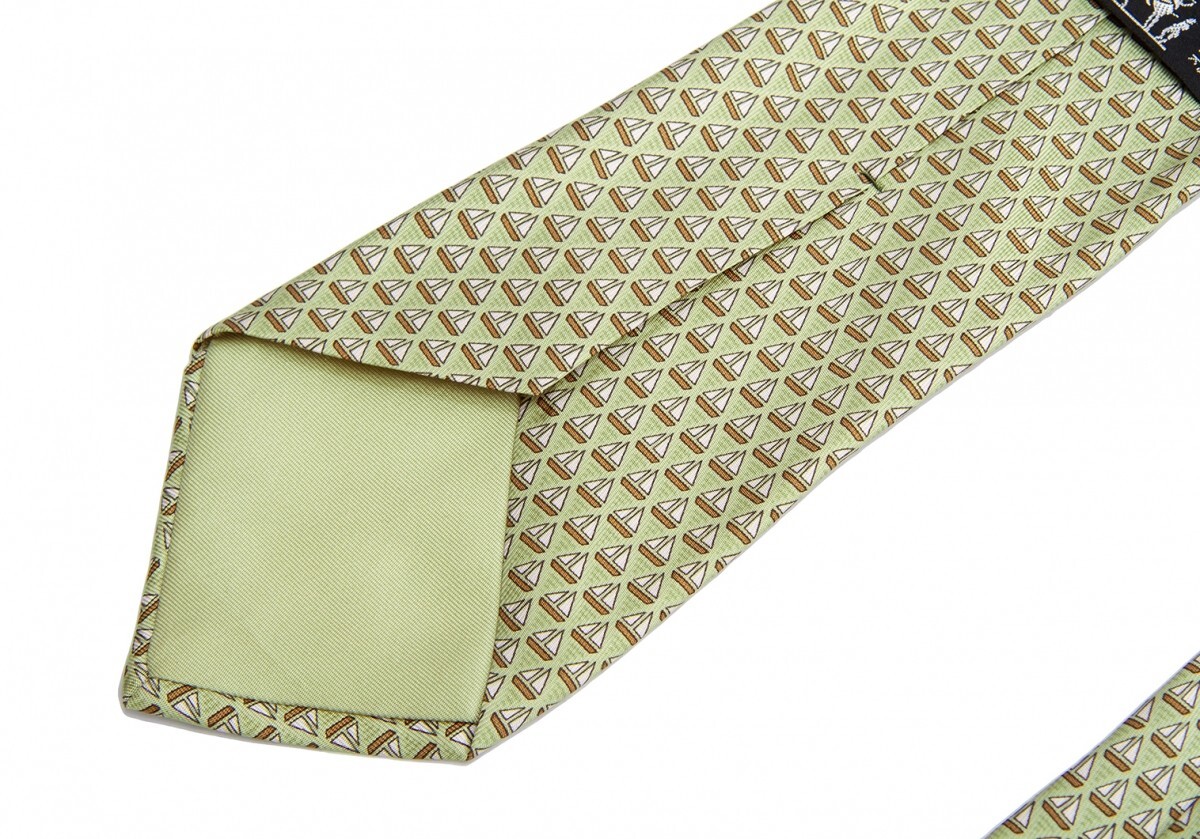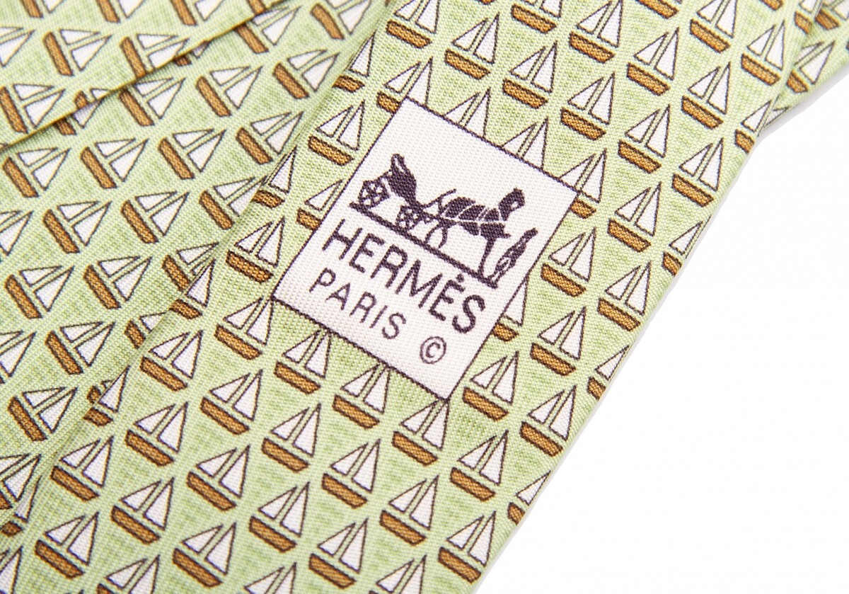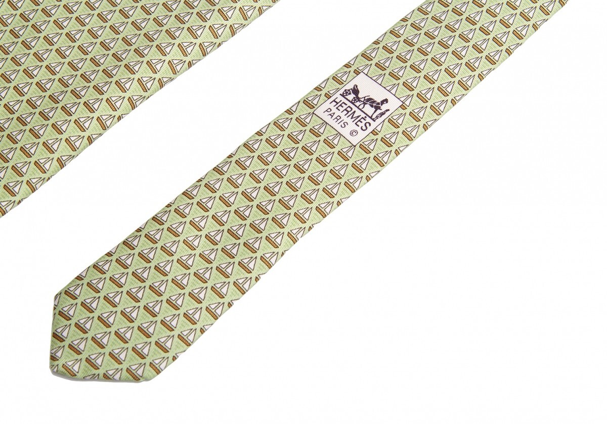 エルメスHERMES ヨット柄ネクタイ 黄緑 |