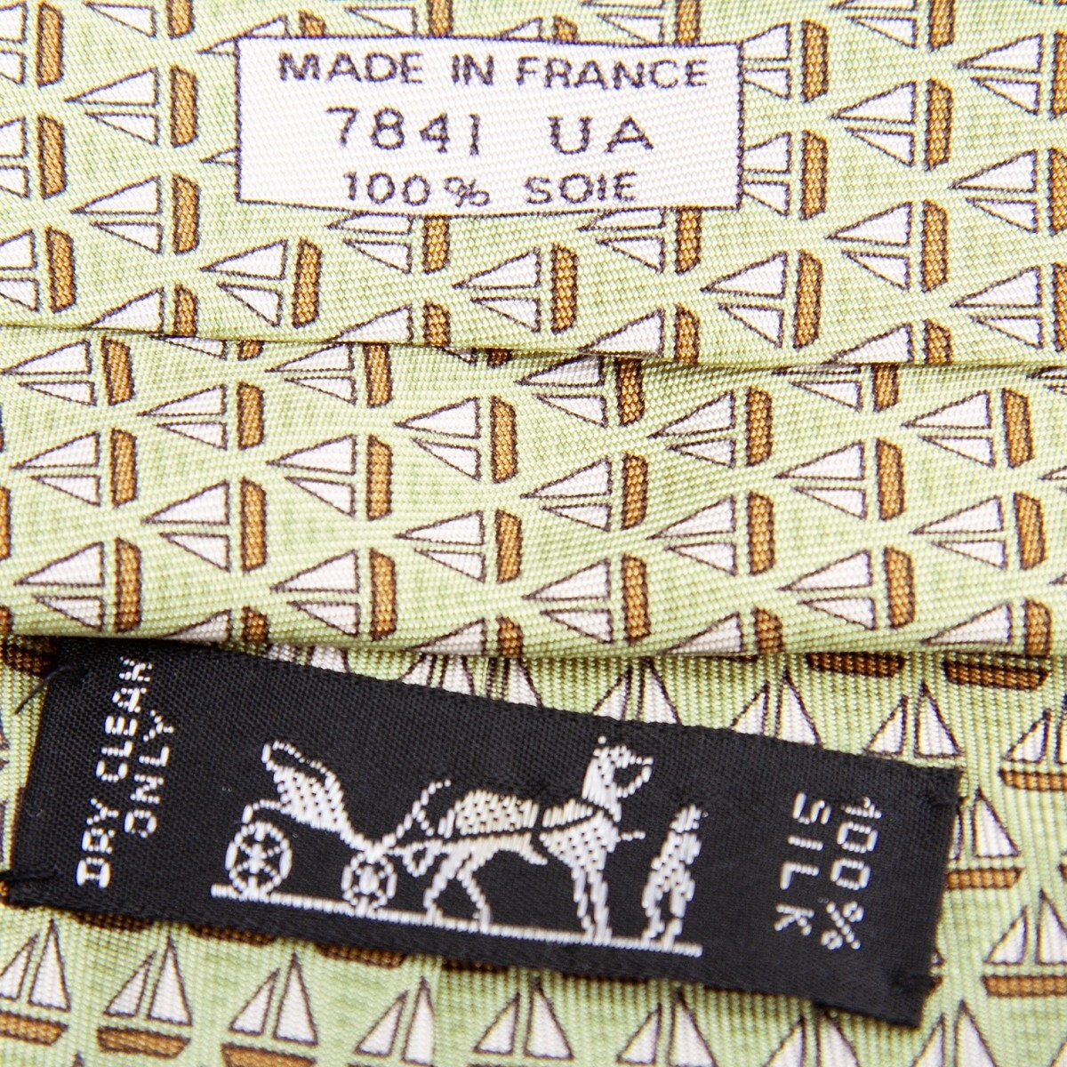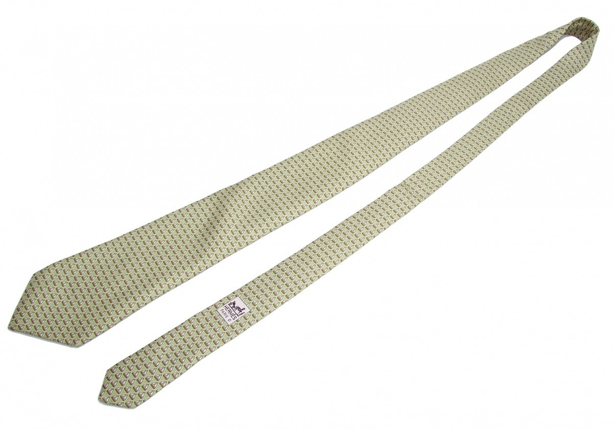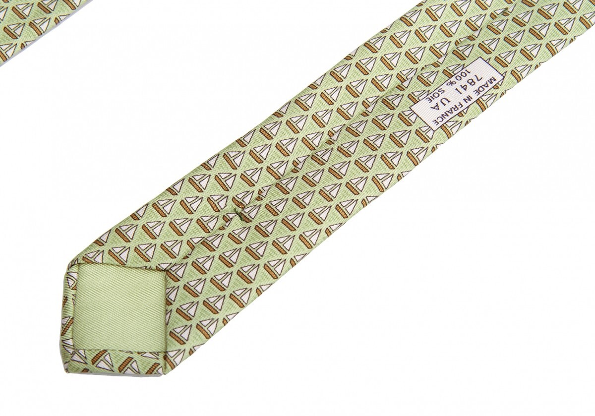 エルメスHERMES ヨット柄ネクタイ 黄緑 |