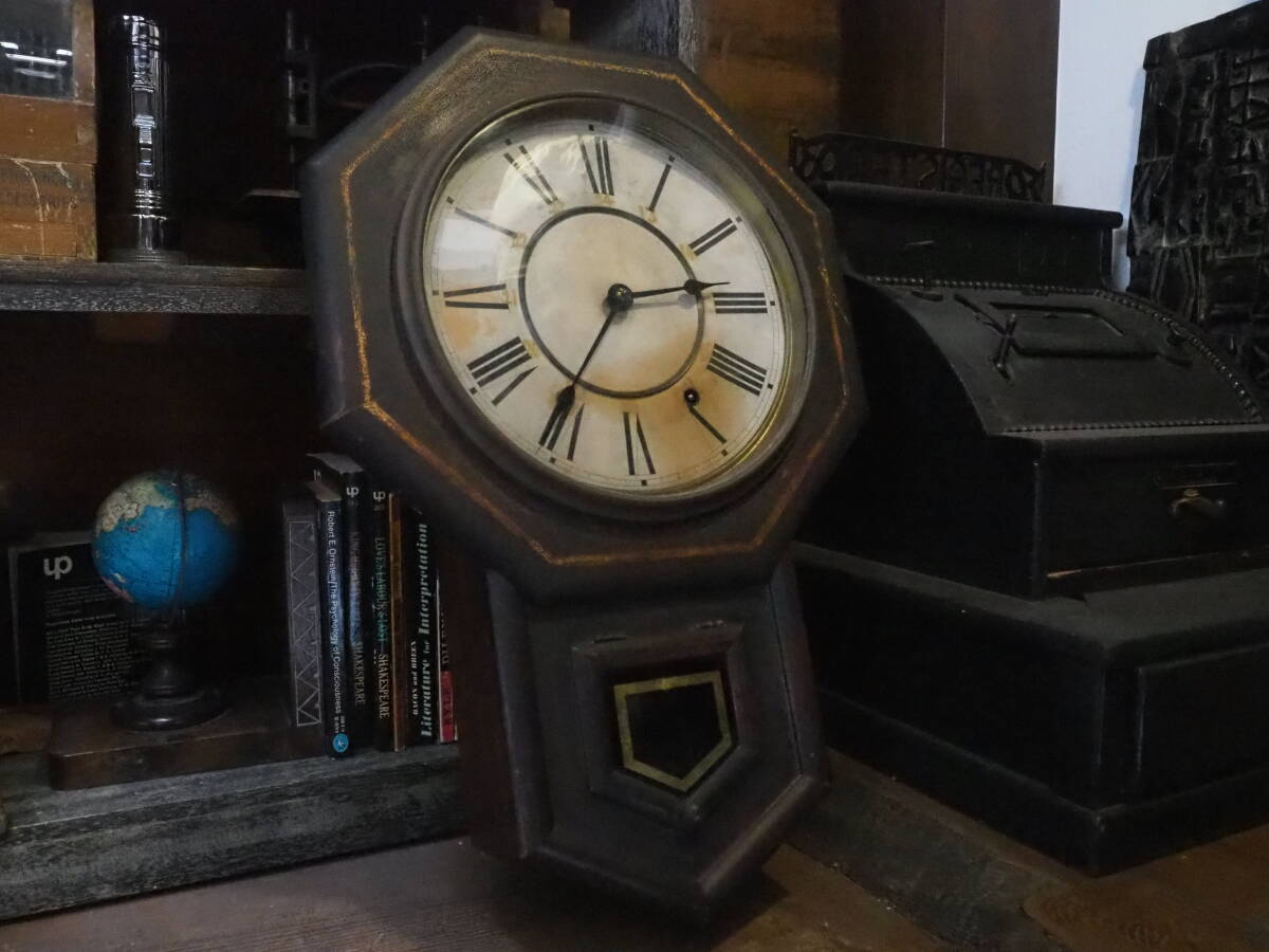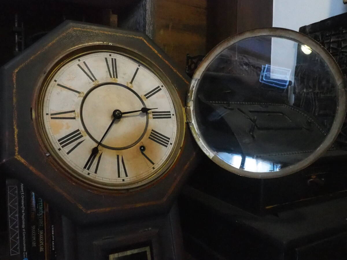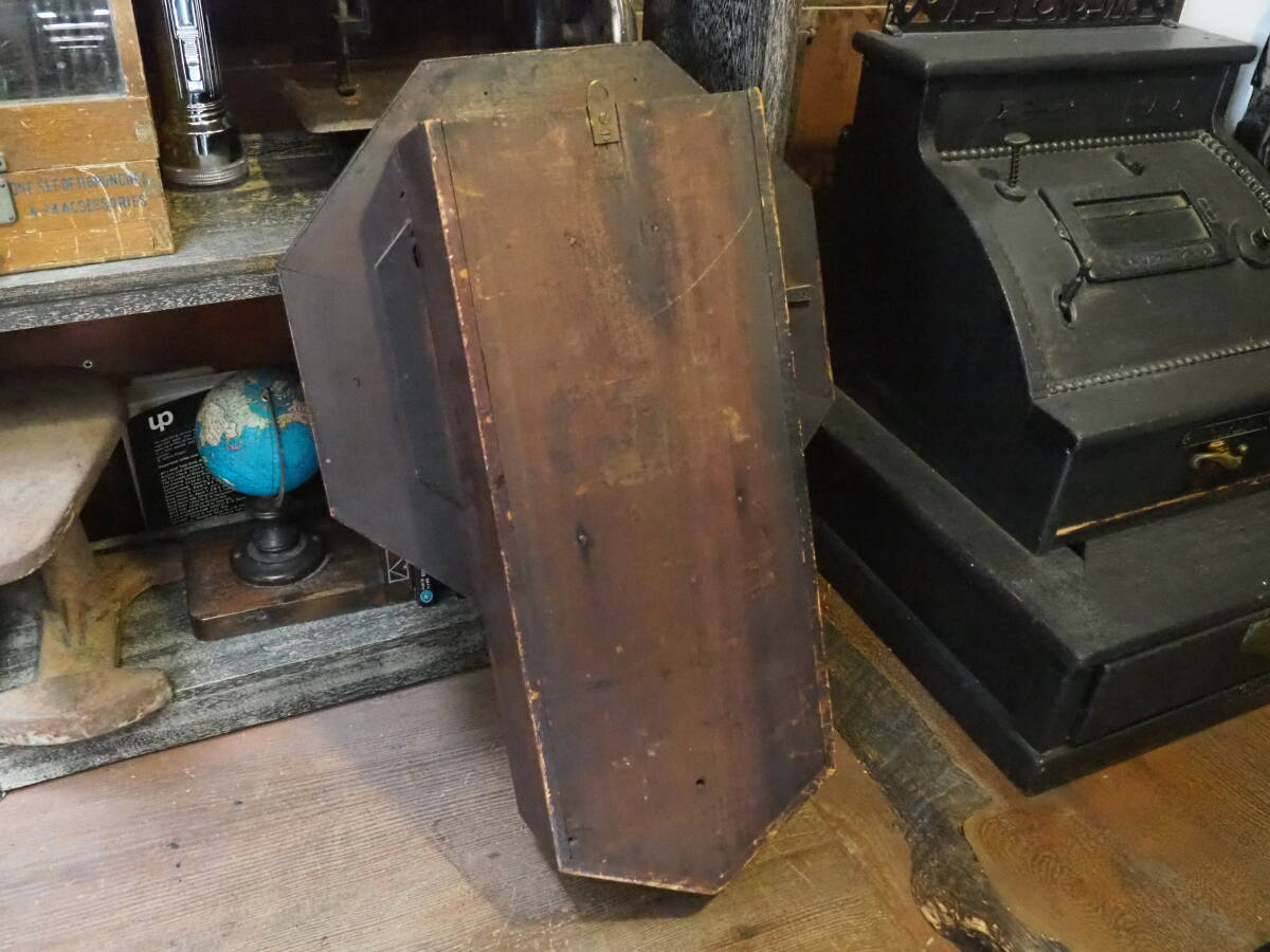 アメリカンアンティークの掘り出し物、古い八角柱時計です。