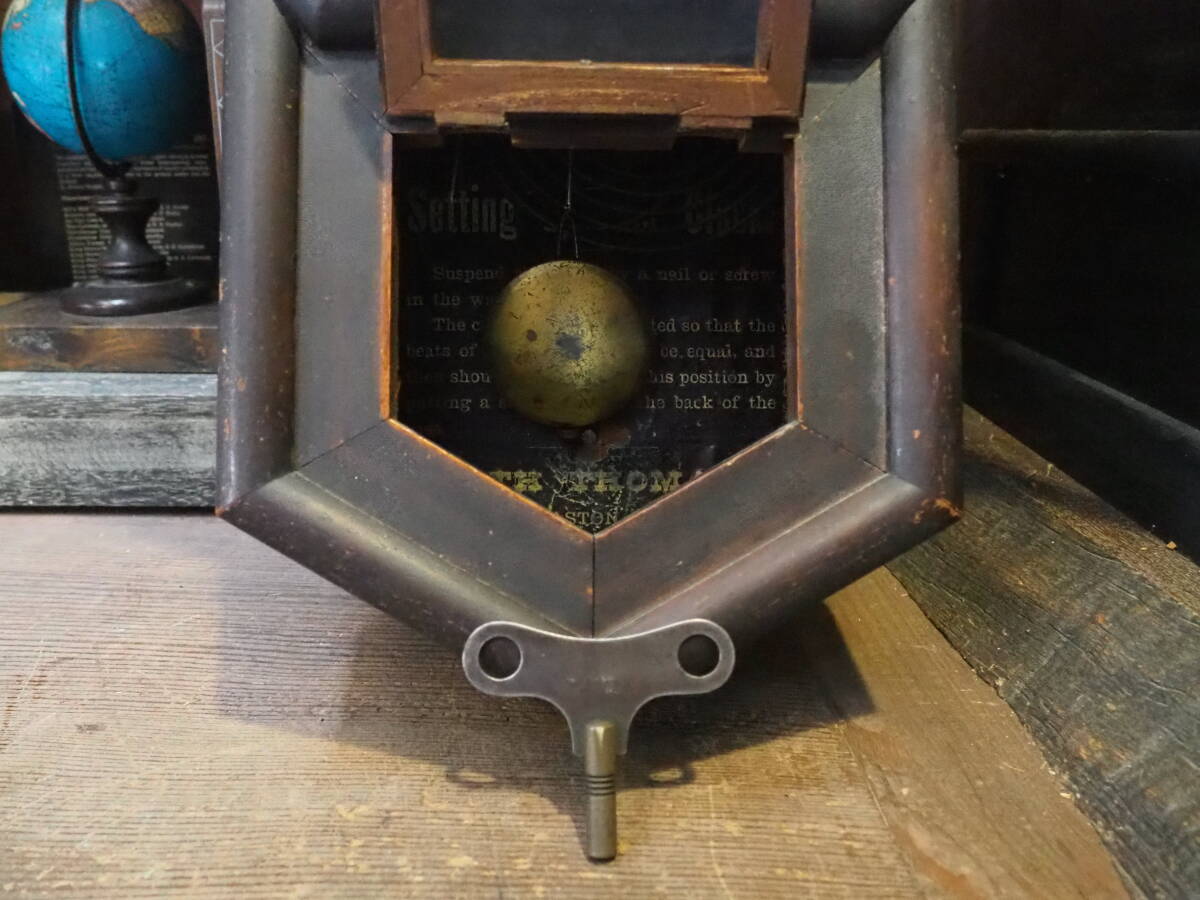 【アメリカンアンティーク八角の柱時計】可動品振り子古道具鍵付き古時計木製時計掛時計時計ネジ巻きゼンマイ床屋インテリア古民家旅館宿屋