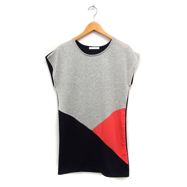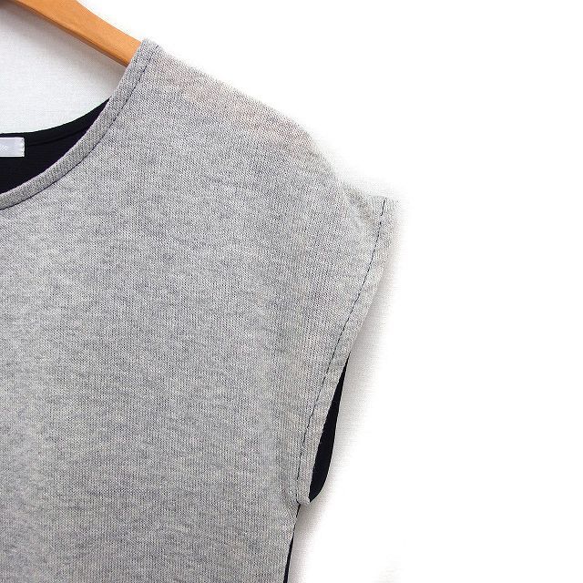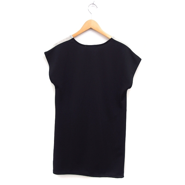 ニコルホワイト NICOLE white 素材切替 チュニック フレンチスリーブ 丸首 38 ブラック 黒 /FT9 レディース
