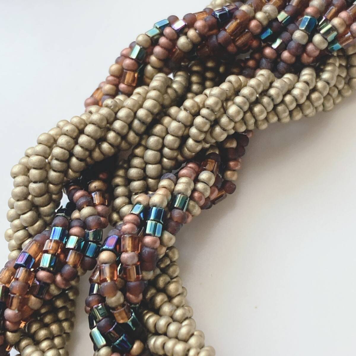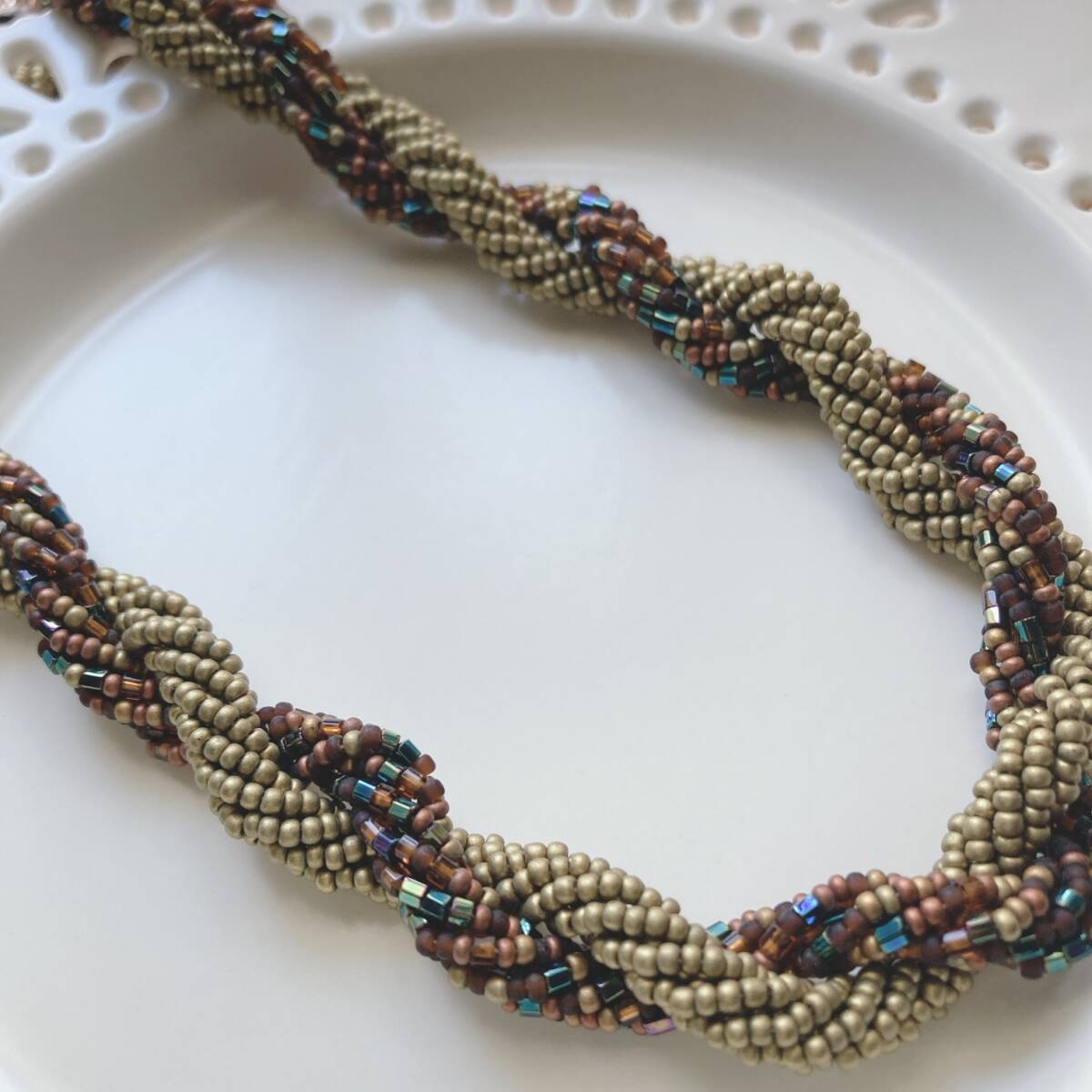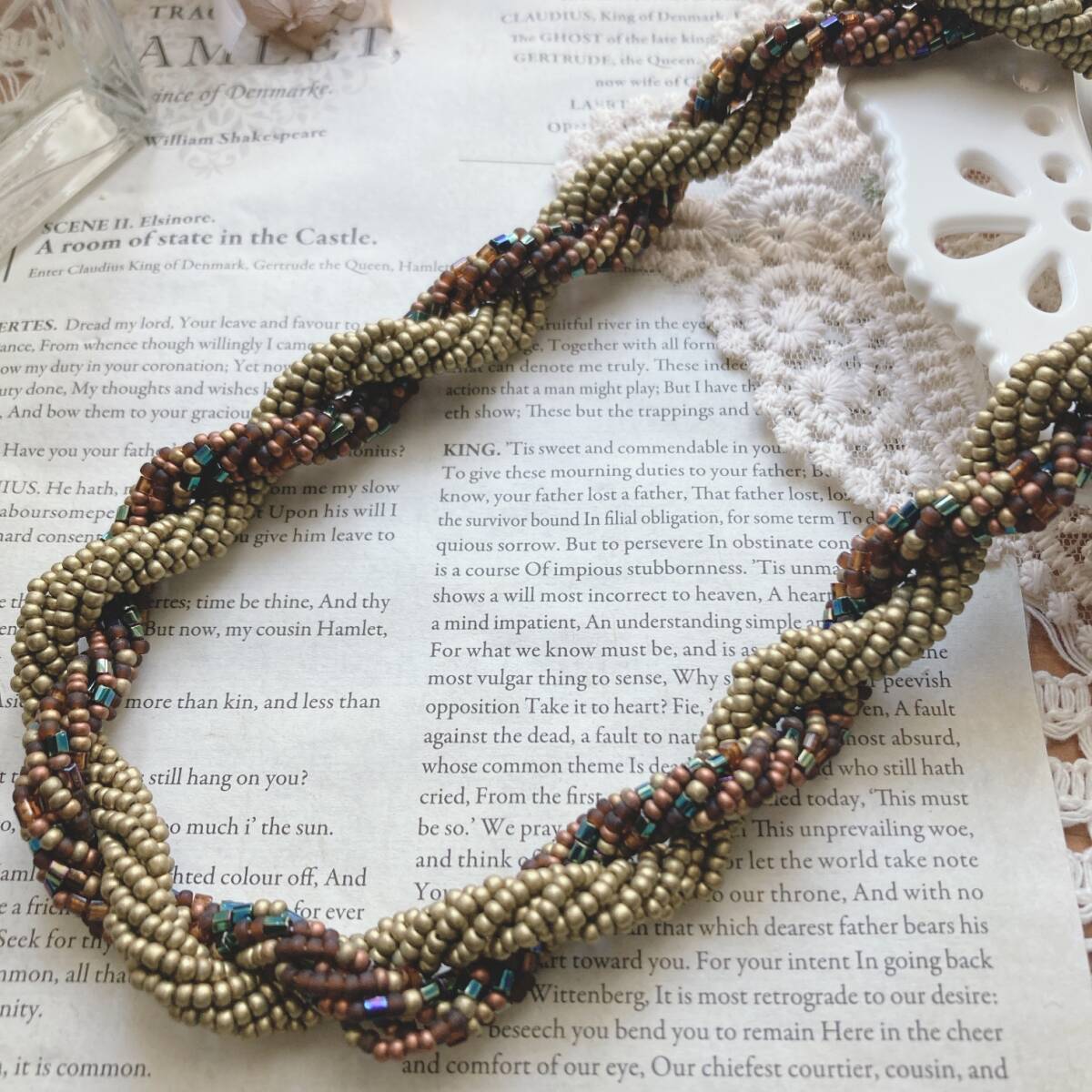 ヴィンテージネックレス ビーズ ヘリボーンステッチチューブスパイラル ゴールド ブロンズ☆Vintage jewelry accessories japan k0657