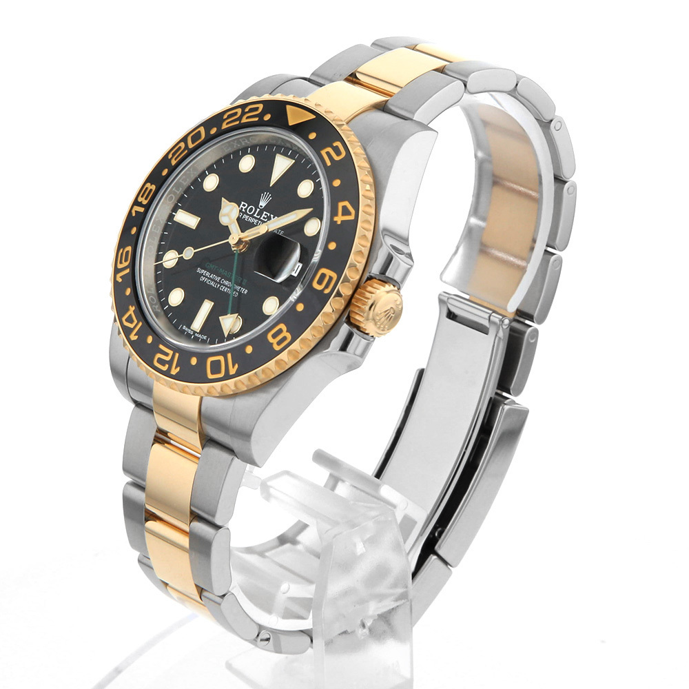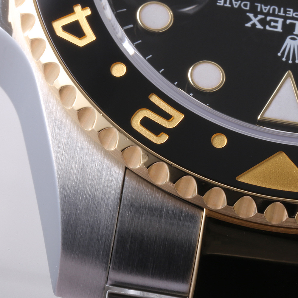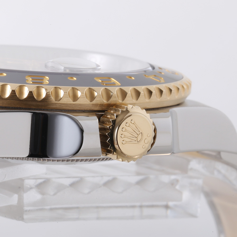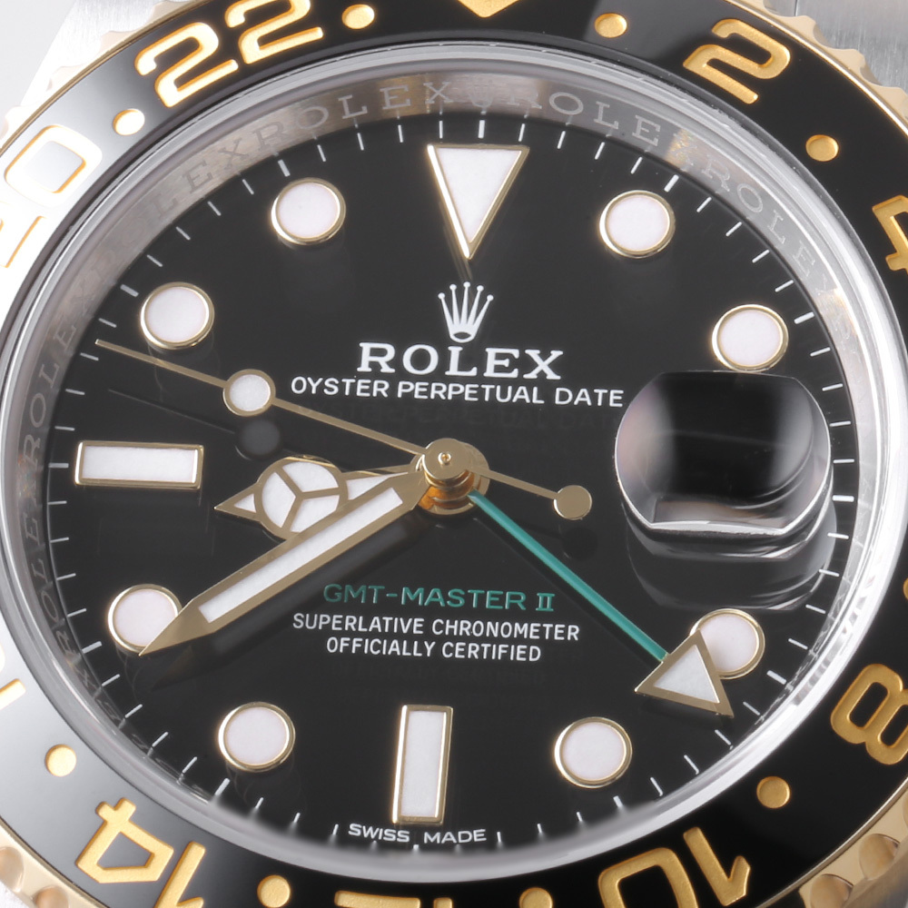 | モデル情報 | "GMTマスターII"のイエローゴールド×ステンレススティールモデルです。セラミック製ベゼルを採用し、24時間表示に文字盤はドットインデックスとなり視認性が高まっています。硬質なセラミックは光沢感が美しいだけではなく、耐久性も考慮されて傷が付きにくくなりました。USED市場でも流通数が少ないモデルです。 |