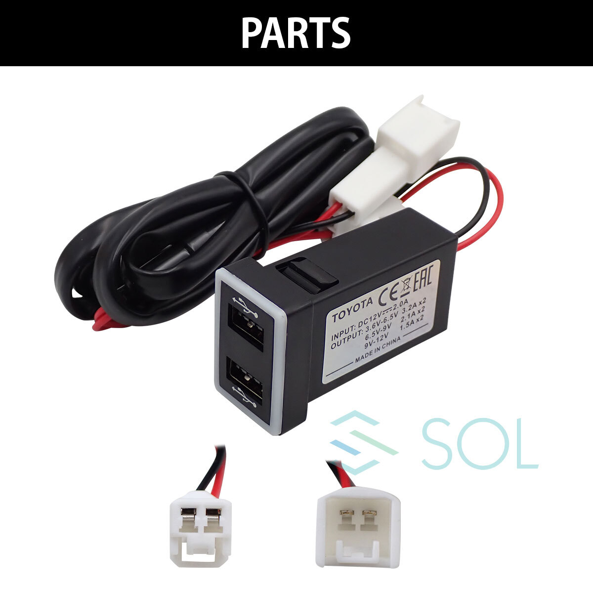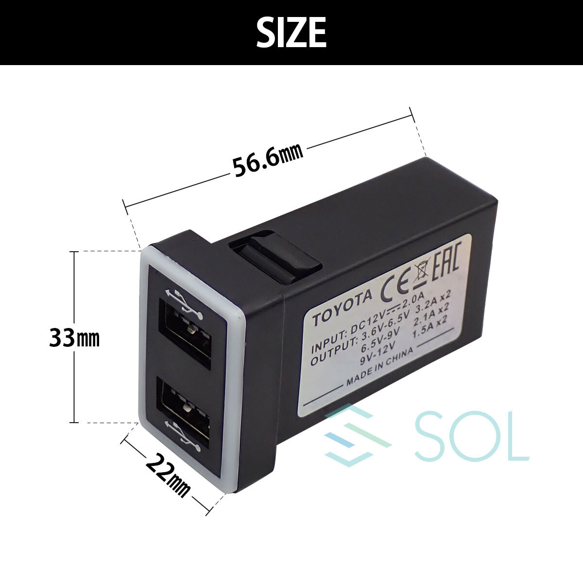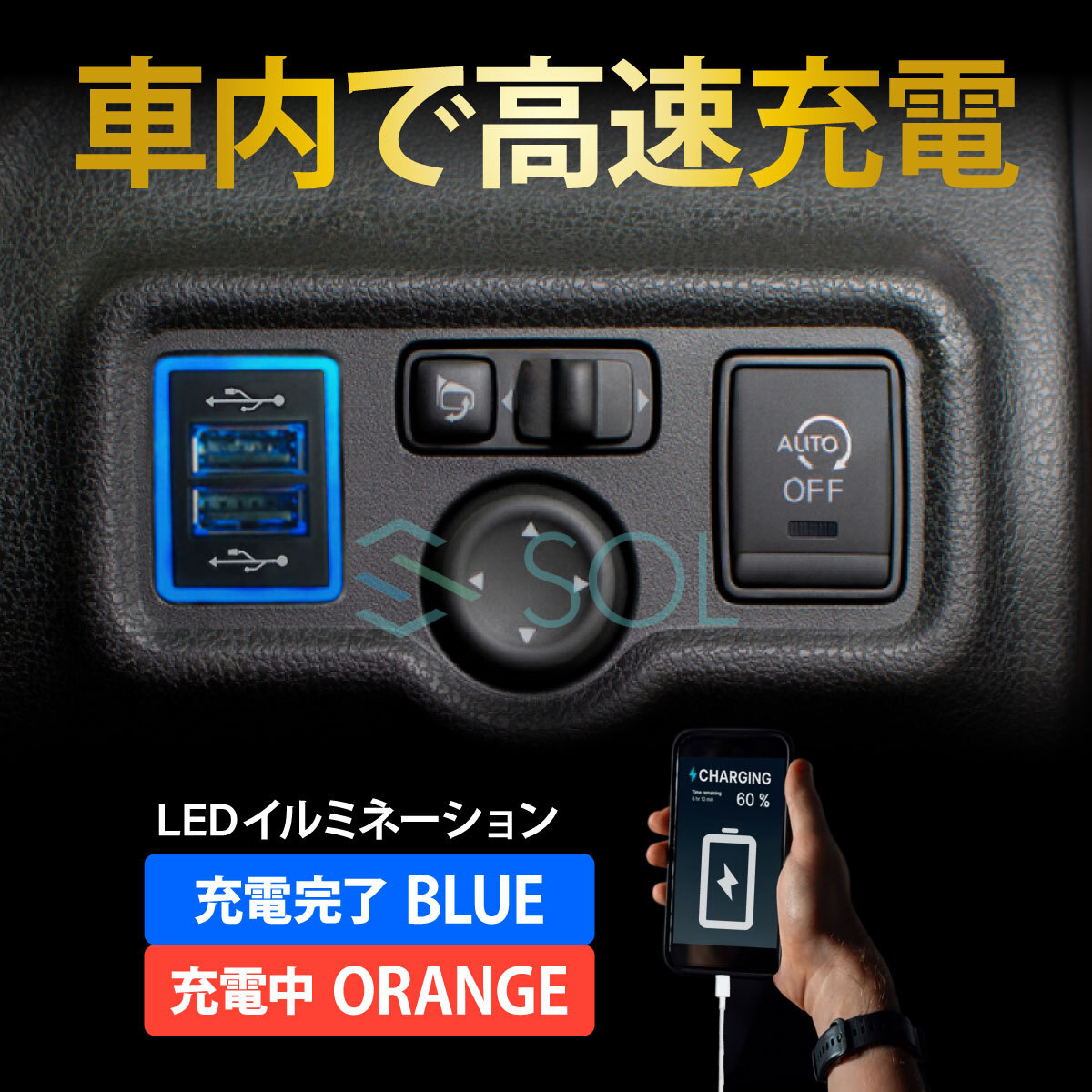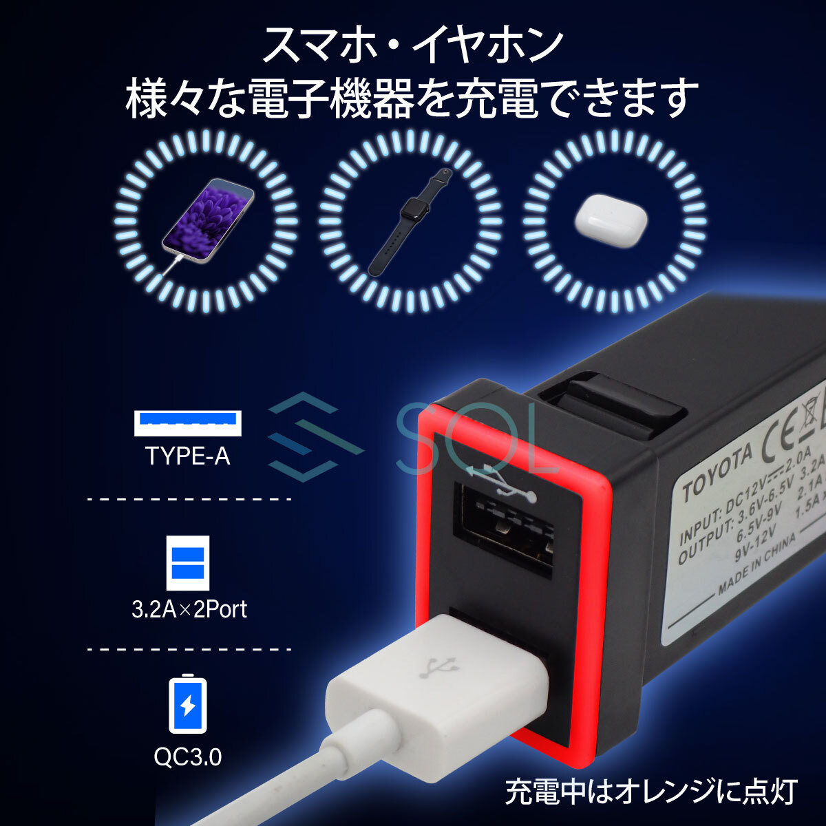 USBポート ノア トヨタ 全般 汎用 TYPE-A 2ポート 急速充電 増設 LED 青 ブルー 充電 サービスホール タイプA カプラー スマホ