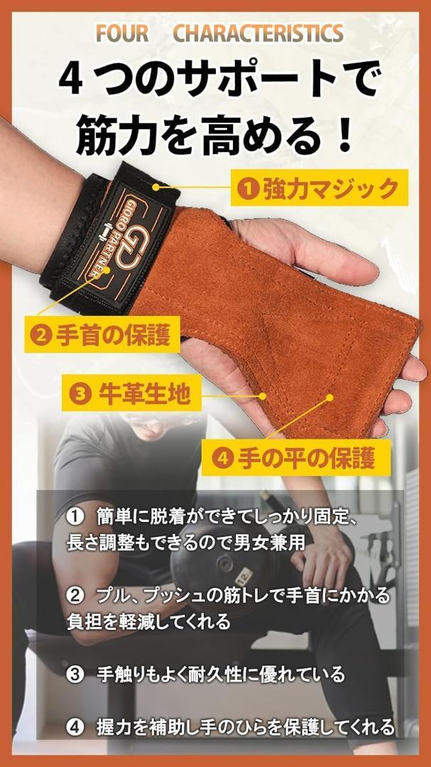 【商品の特徴効果】懸垂グローブはトレーニングジムなど筋トレを行う際に使用する商品となります。懸垂やダンベルなど発汗による手の滑りのストレスを抑えてくれます。また滑り止めの効果により握力の低下も防ぎトレーニング回数を増やす効果もあります。