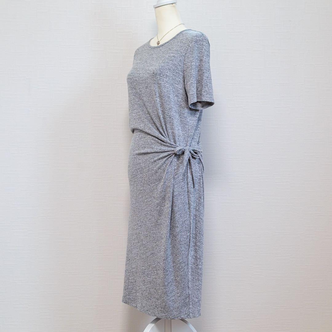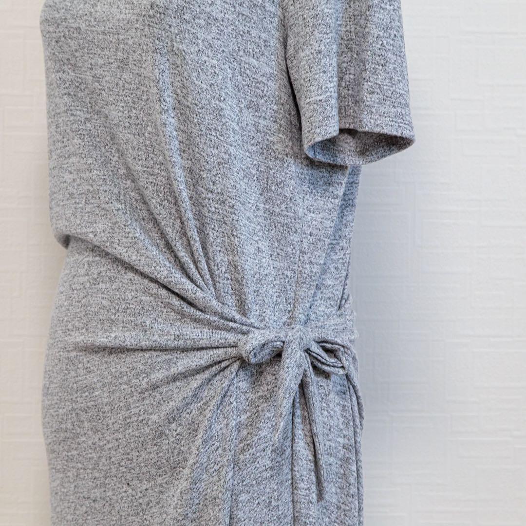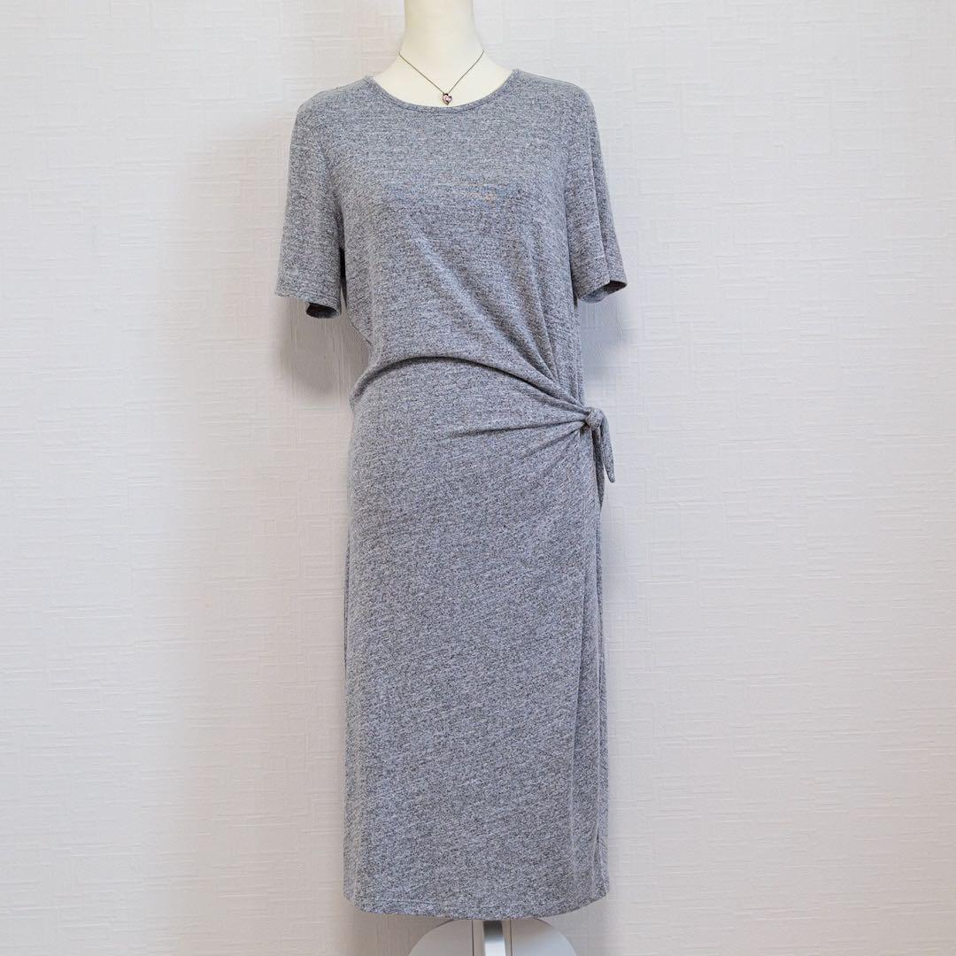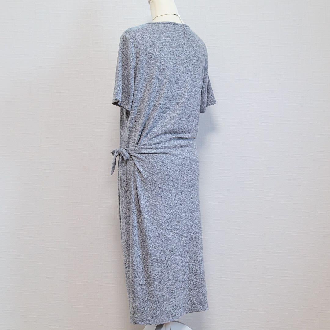 クルーネック ウエストリボンIラインロングワンピース グレー