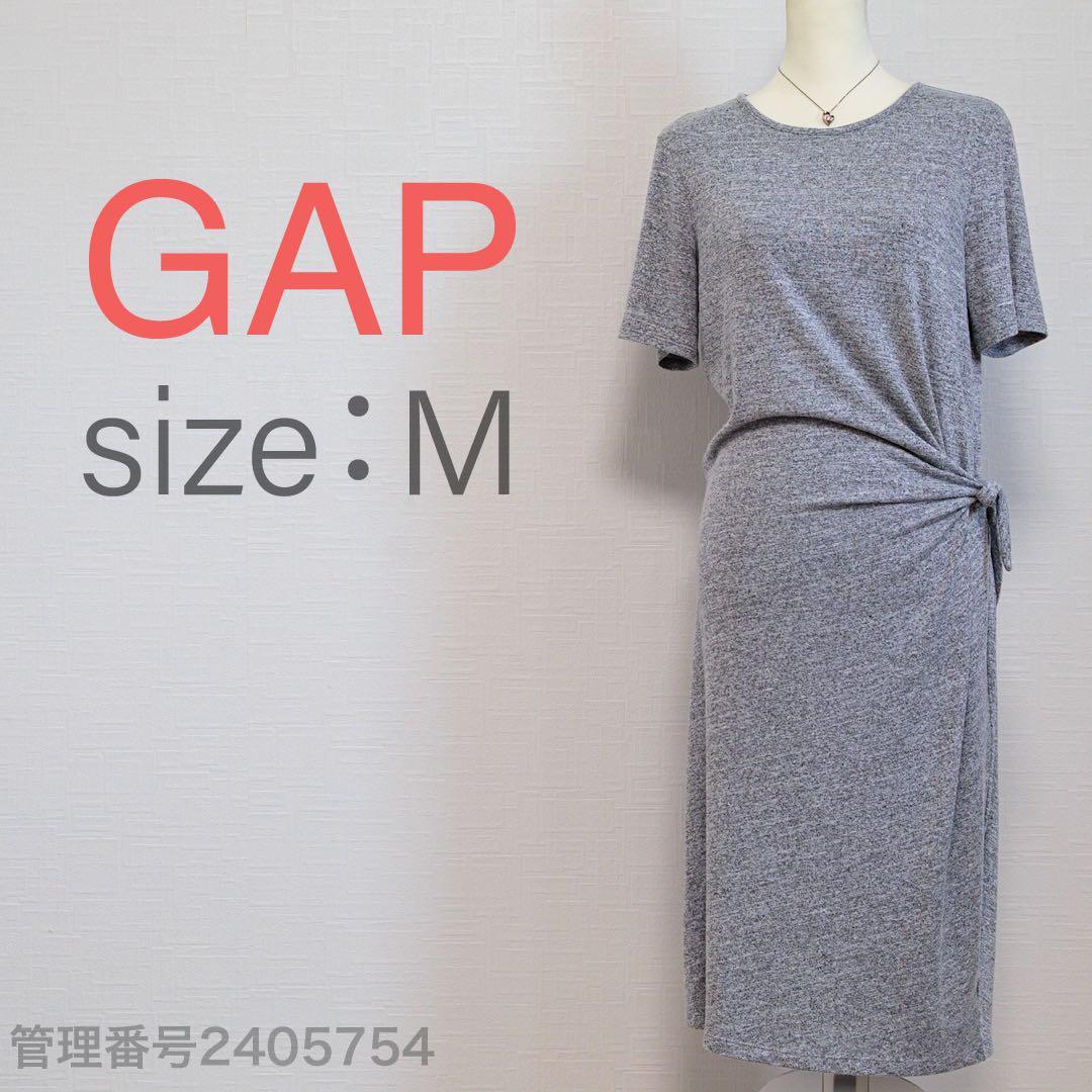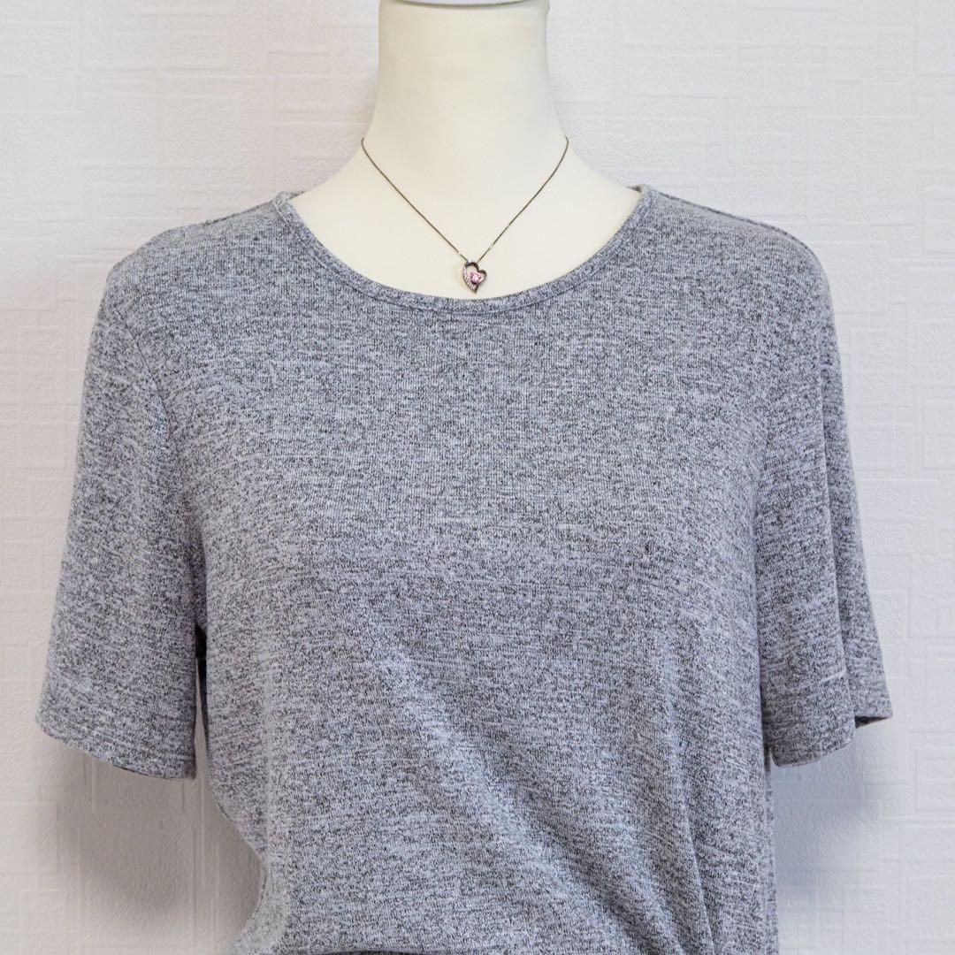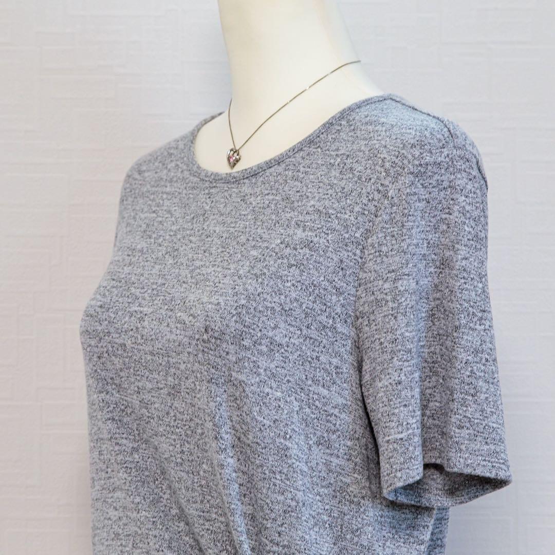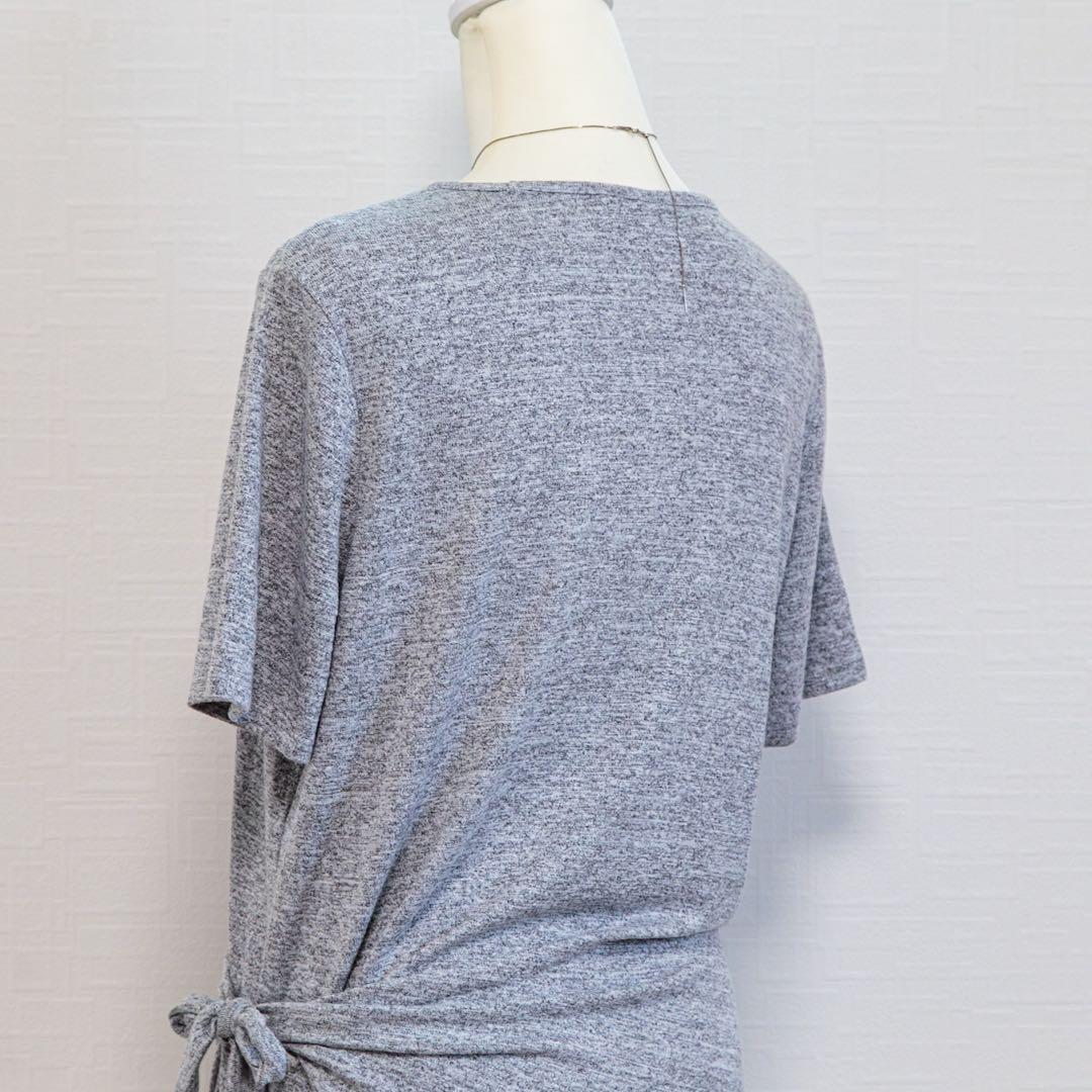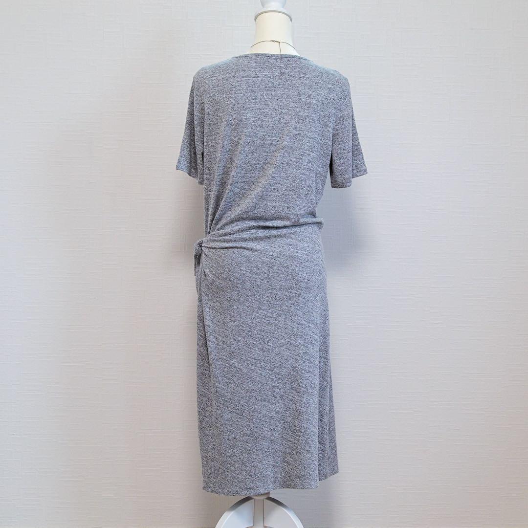 クルーネック ウエストリボンIラインロングワンピース グレー