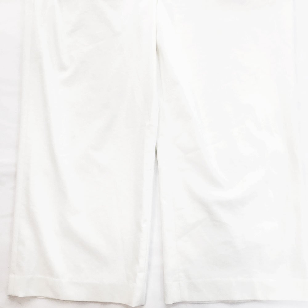 | コメント |                 世界から発信されるファッションの流行をイチ早く取り入れた多彩なラインナップが特徴のパシオーネ。 あらゆるシーンに着回しの効くホワイトカラーのワイドパンツです。ウエストゴム入りで締め付け感が少なく、着心地の良いパンツです。裏地は付いていません。 状態はUSEDです。両足前側に細長い薄いシミが点在しています。両足裾内側の仕付け糸が一部取れており、付近に毛玉がございます。左足後ろ側の股付近、裾にそれぞれ線状の汚れがございます。強い使用感がありますがこれからも着用いただけます。ご理解のある方のご購入をお待ちしております。  |