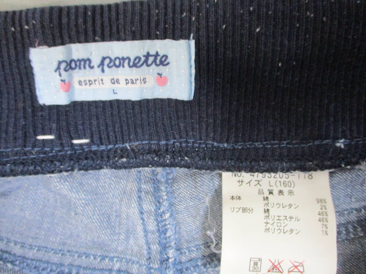 ☆商品名☆  pom ponette  ポンポネット  女の子  デニムパンツ  L(160)サイズ  刺繍  (株)ナルミヤインターナショナル