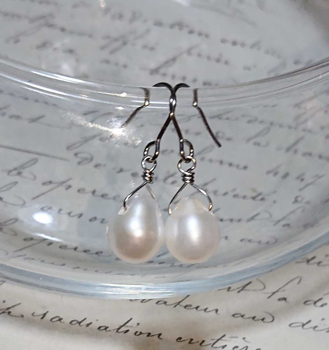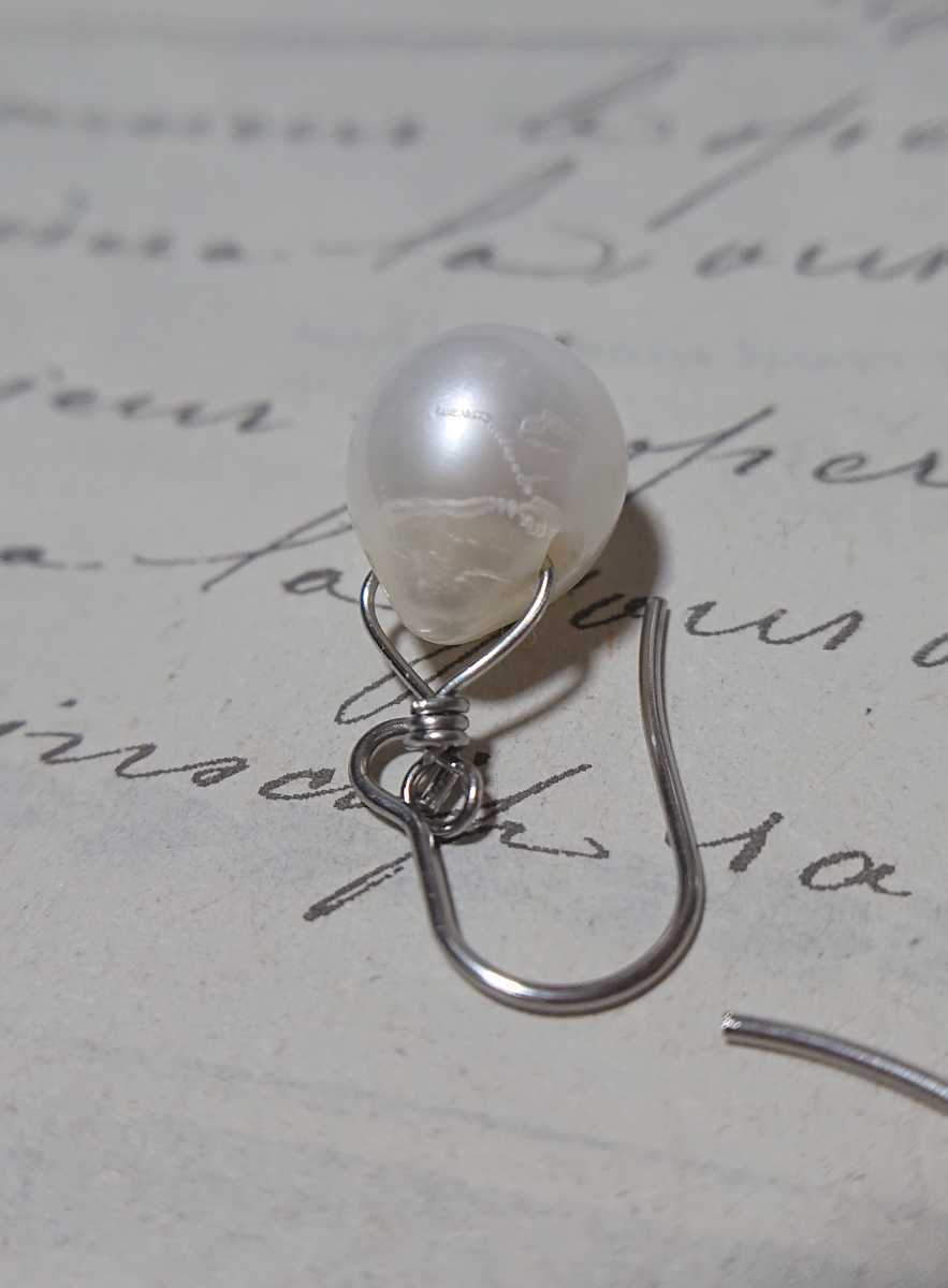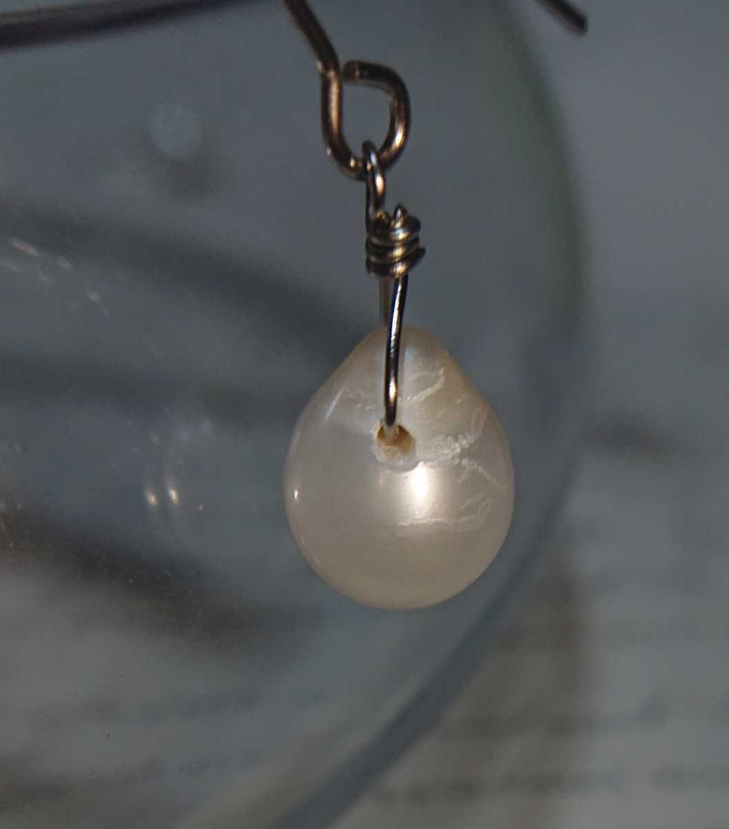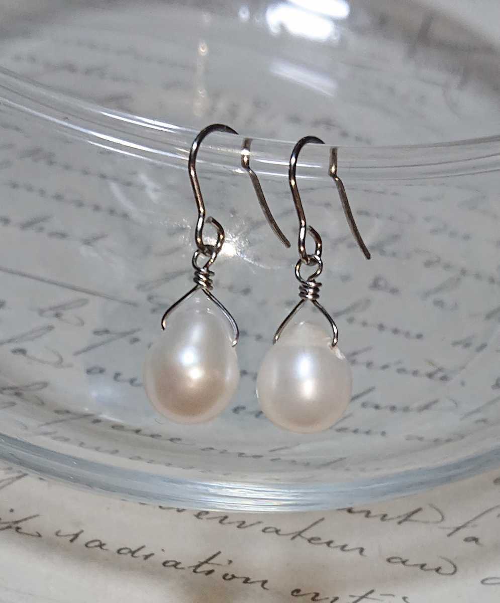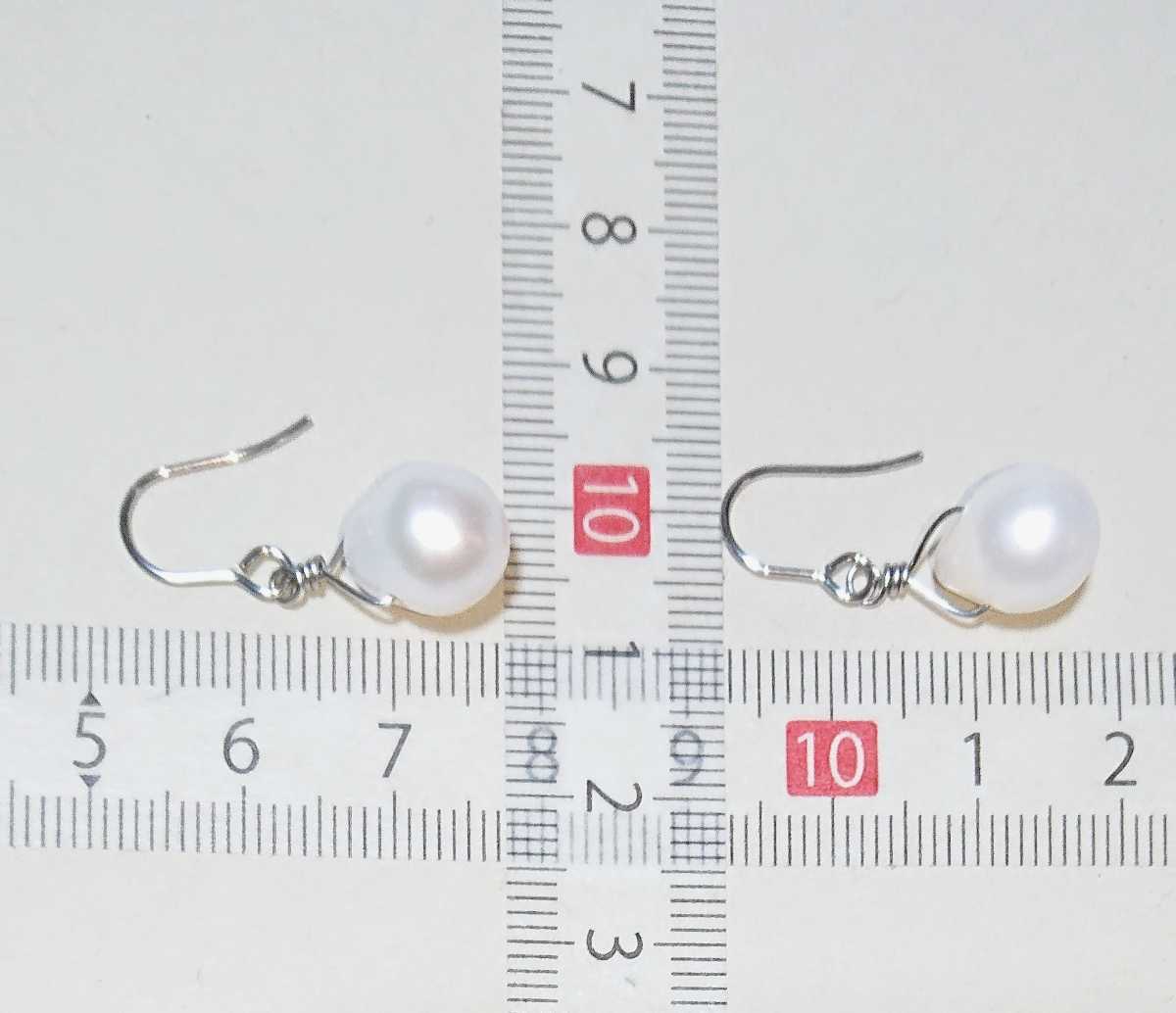 長さ10ミリ以上のドロップ型淡水真珠のピアスです。
