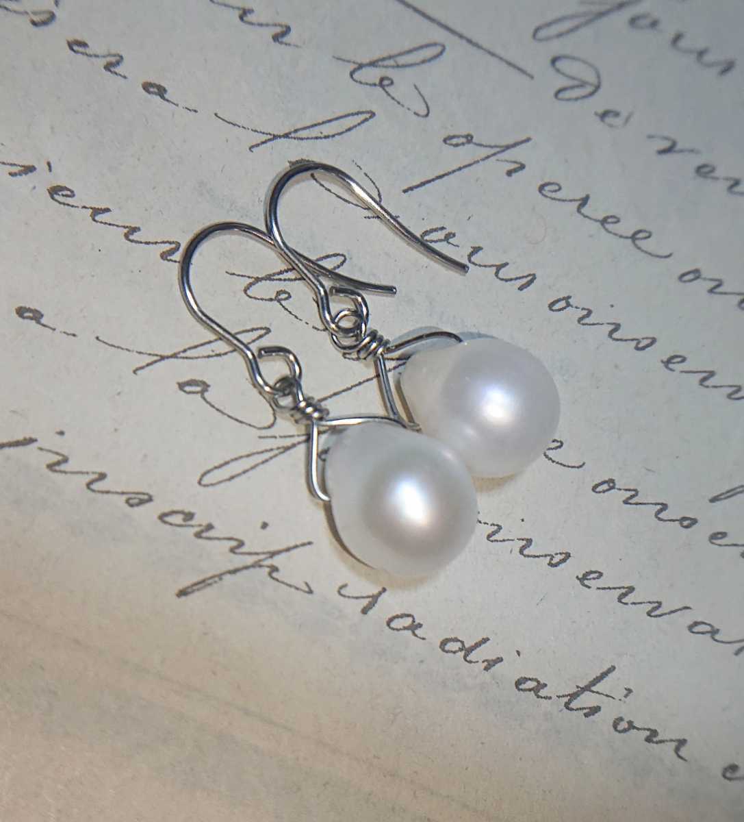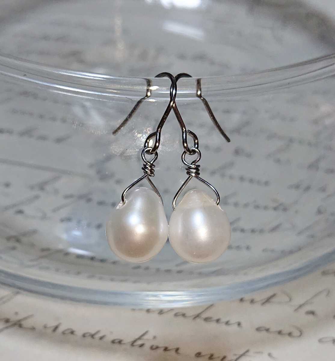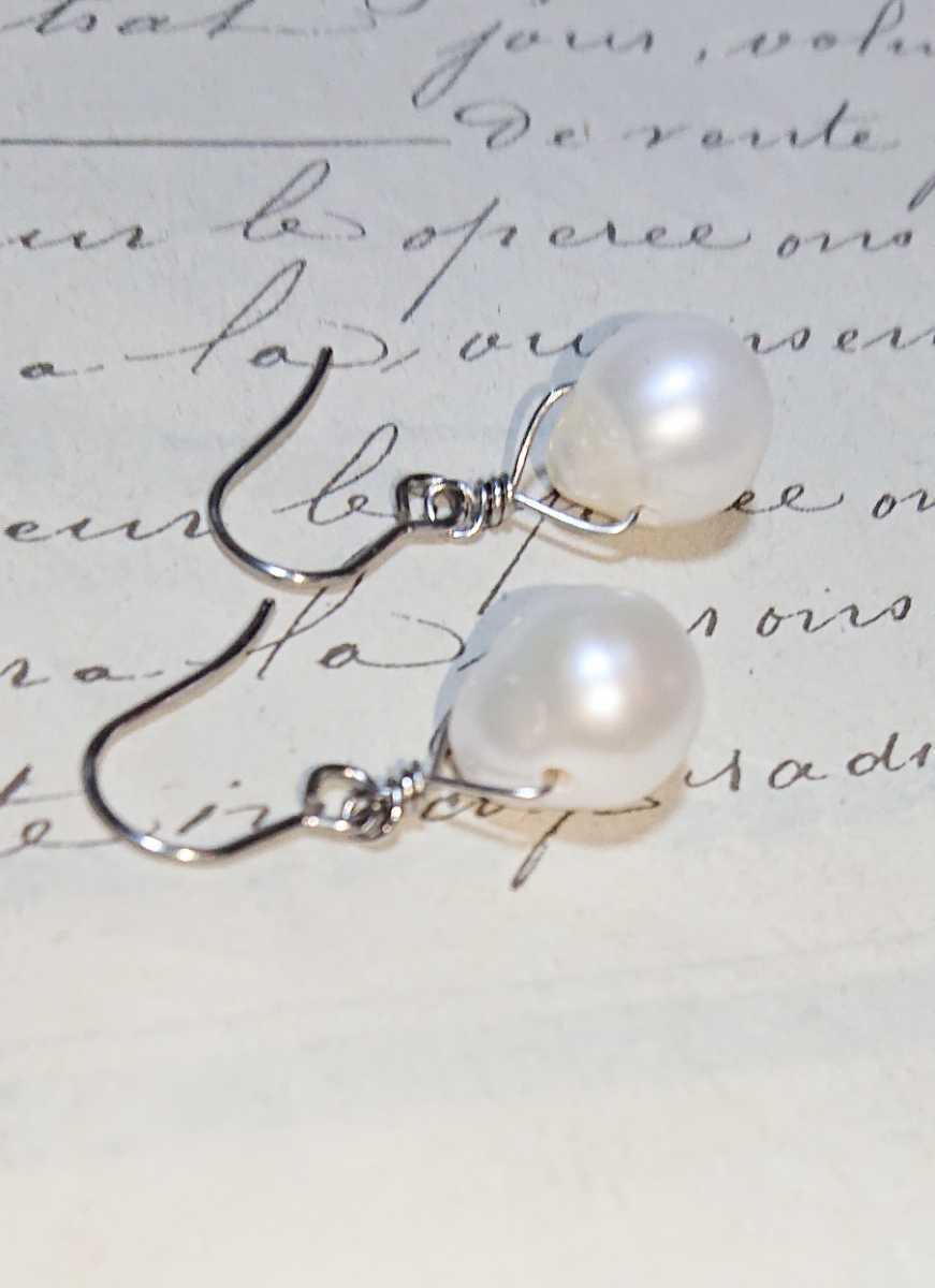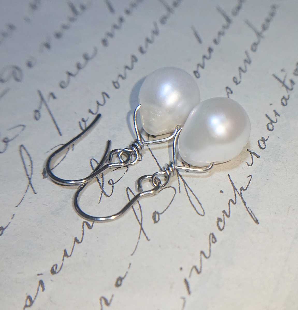 長さ10ミリ以上のドロップ型淡水真珠のピアスです。