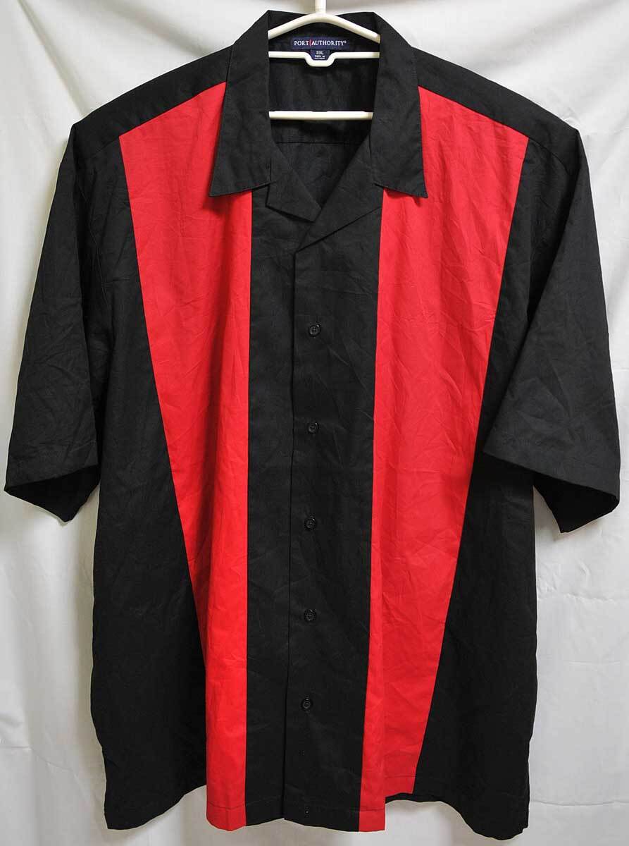 古着●ポートオーソリティ ボウリングシャツ レッド&ブラック シンプル 3XL 右肩に傷 xwp