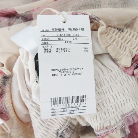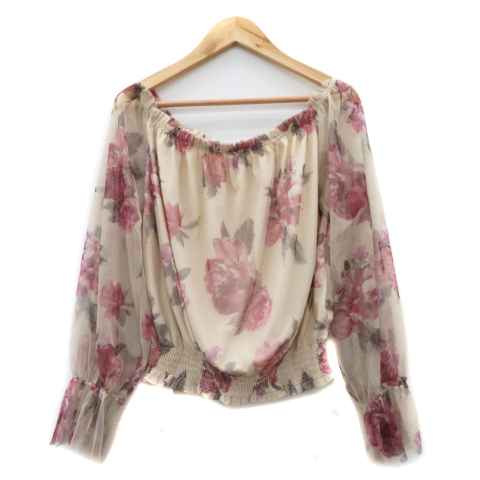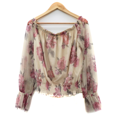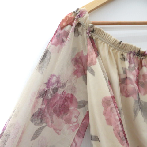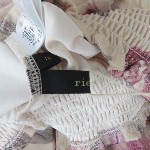 未使用品 リエンダ rienda カットソー 長袖 チュール 花柄 F マルチカラー ワインレッド ベージュ /YK28 レディース