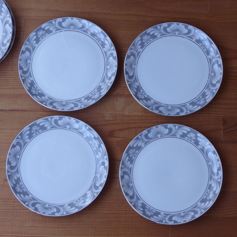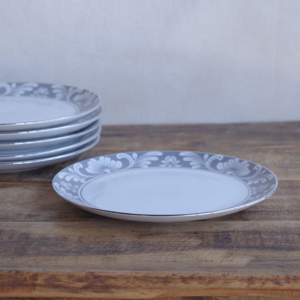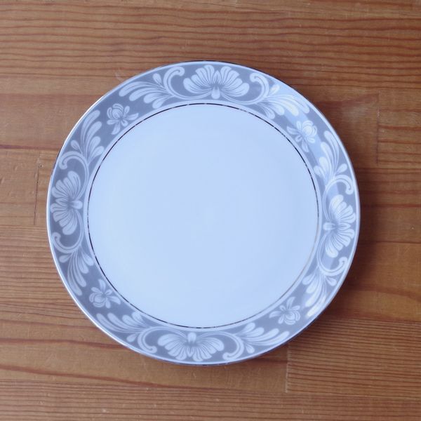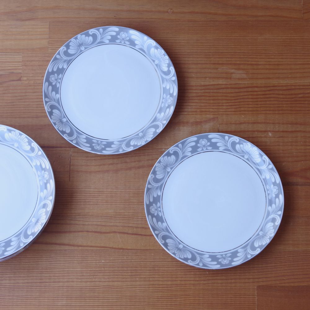 エッシェンバッハ グレー シルバー ダマスク柄 ケーキ皿 デザートプレート 17cm ドイツ ヴィンテージ食器 Eschenbach Bavaria #240213-1~6