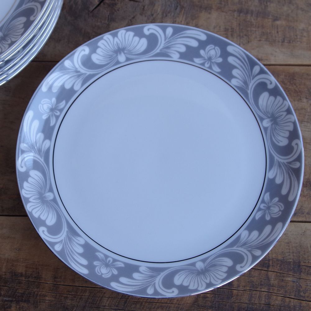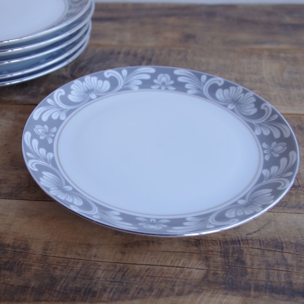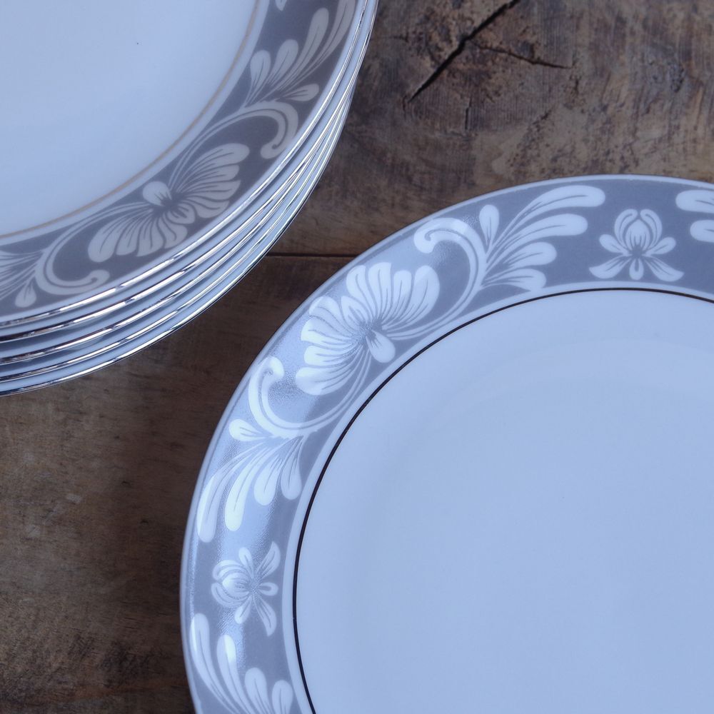 エッシェンバッハ グレー シルバー ダマスク柄 ケーキ皿 デザートプレート 17cm ドイツ ヴィンテージ食器 Eschenbach Bavaria #240213-1~6