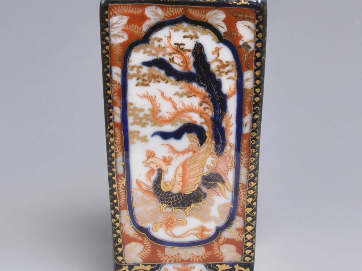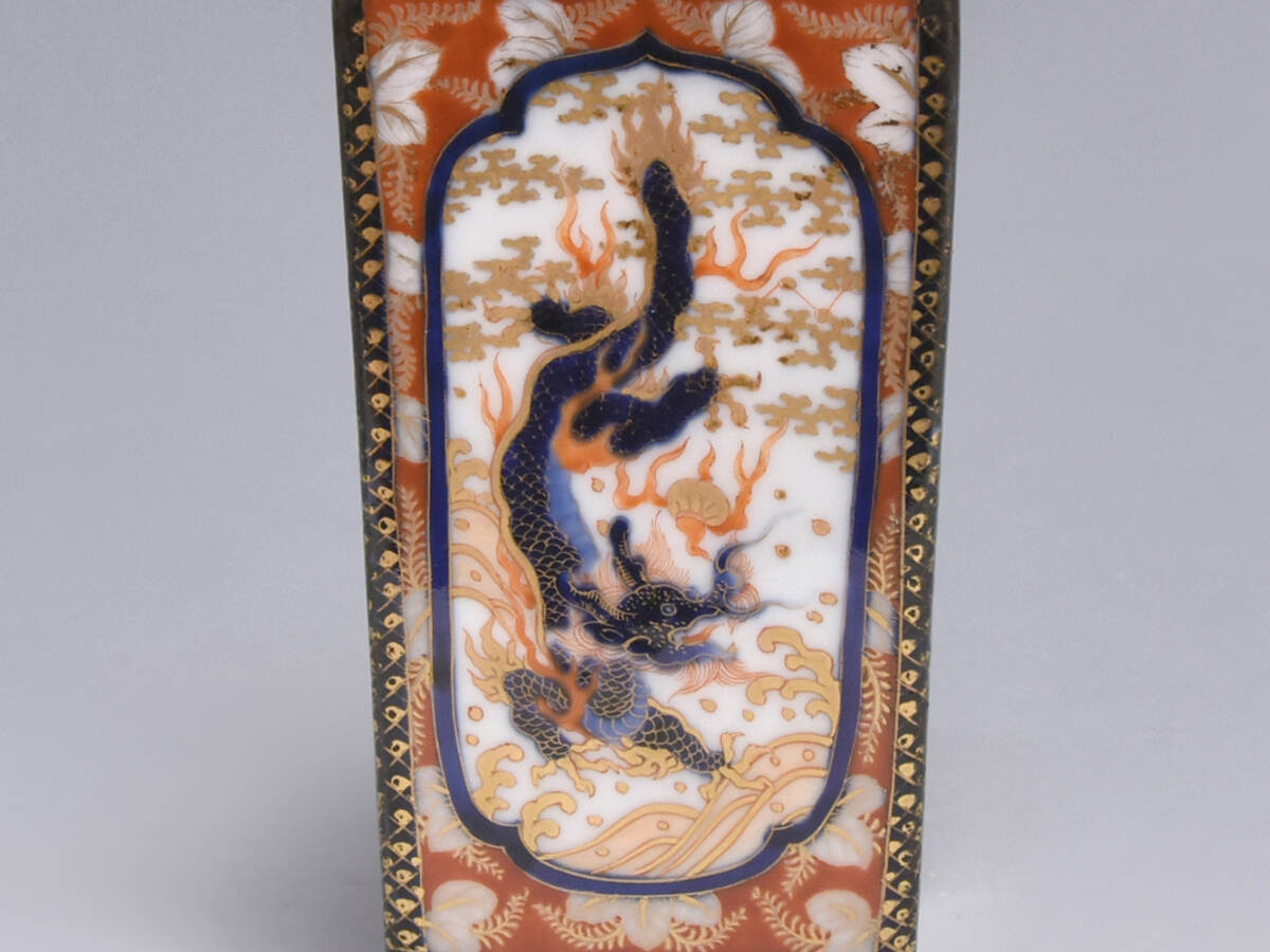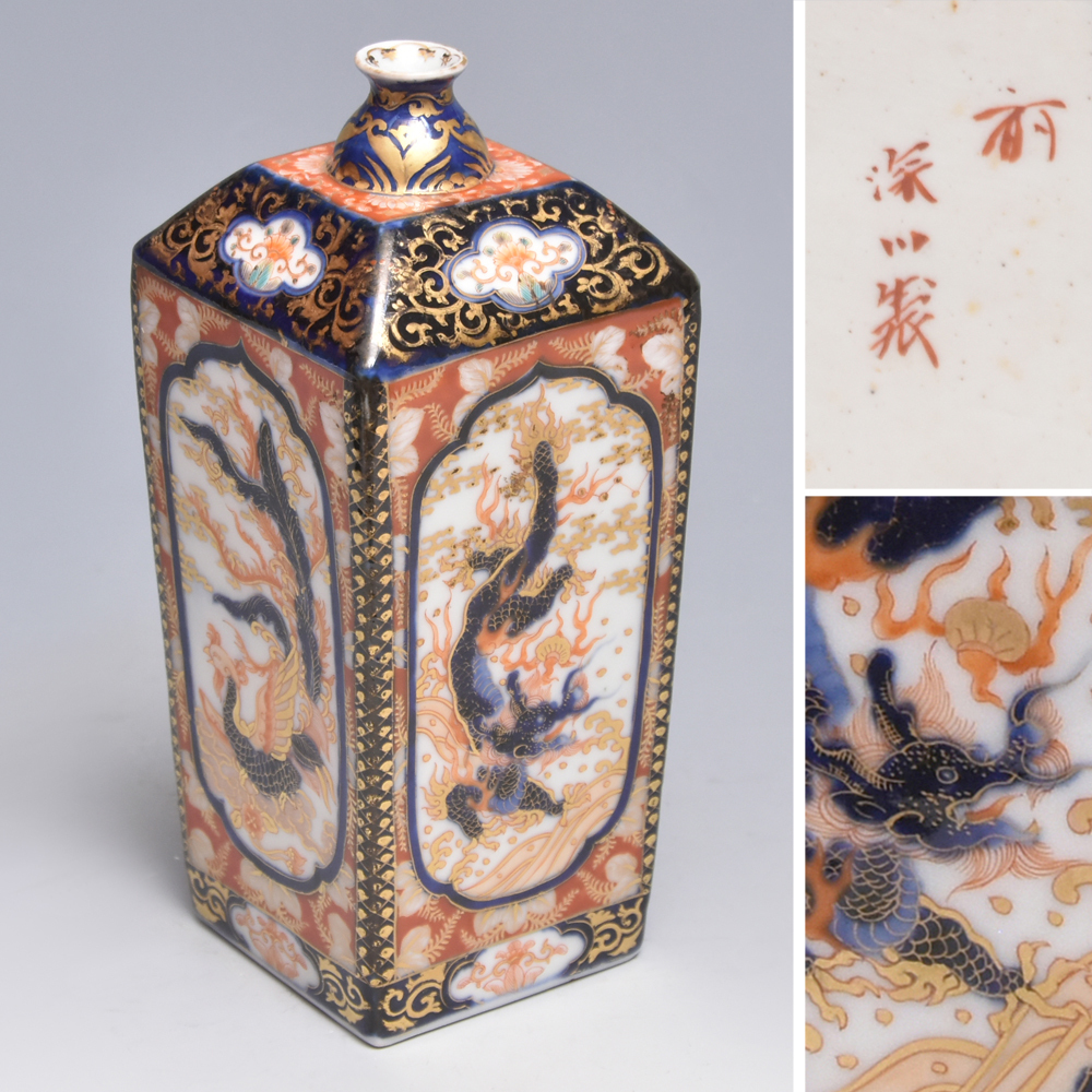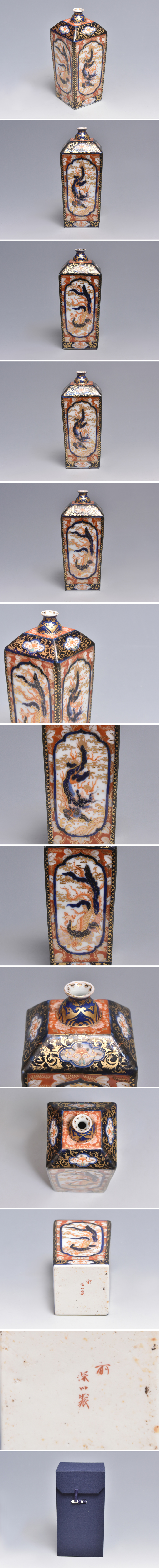 | 旧宮家伝来 明治期 オールド深川 金彩色絵龍に鳳凰図角瓶 四方瓶 |