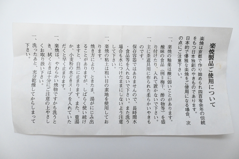 松楽 茶碗 ■ 佐々木松楽 銘[ 吉祥 ] 福本積應書付 黒楽 ■ ■ 茶道具 共布 共箱 外紙箱 №9938■ サイズ : 径約12.1cm × 高さ約 8cm 木箱サイズ : 約15cm × 約15cm × h約12.5cm お目に留めて頂いた方へお譲り致します。 本日のお買得品のお仲間にいかがでしょうか。 ※ 画像以外の付属品はありません。 ■整理品 使用未使用不明 中古品相応 入手状態でお譲り致します。 主観になります。お品物保管の状態から、長期保管未使用かと思われます。 欠けヒビはありません。但し、新品新品同様ではありませんの で経年・保管状況による多少の経年劣化・擦れ・触り痕・汚れ等はご承知おき願います。 画像からご判断頂ける方、しばらくの間眠っていた 多少古いお品物とご理解頂ける方のみご検討をお願い致します。 ご入用の方へ! お見逃しなく! ■ご案内 お品物は、経年中古品現状渡しでございます。新品ではありません。 ノークレーム・ノーリターンとさせていただきます 。 ※モニターで見える色やイメージがライトの関係で実際のものと違う場合があります。 又、タイトル・コメントはあくまでも主観です。見落としなどがあるかもしれませんのでご参考程度とお考え願います。 お品物に関する情報は、箱やお品物上にあります印刷・記載等から 拾っております。未使用と思われるお品物でありましても、 中古で入手しているお品ですのでメーカー等の本物 保証をするものではありません。 尚、見解には個人差がございますので神経質な方はご入札を御控え願います。 検索ワードとして、タイトルには出品商品と関連のない単語も含まれる場合があります。 ご注意:評価が著しく悪い方、新規IDの方の入札・ご落札を削除する場合がございます。 ※ 採寸誤差、誤認、誤記等につきましてはご容赦願います。 紙箱 共箱等納品の場合は基本的に古さがございます。劣化、書き込み等がある場合もございます。 完璧ではありません。 ■お取引について 2日以上ご連絡を頂けない場合はキャンセル致します。 お支払いは、落札後3日(72時間)以内にお願い致します。 |