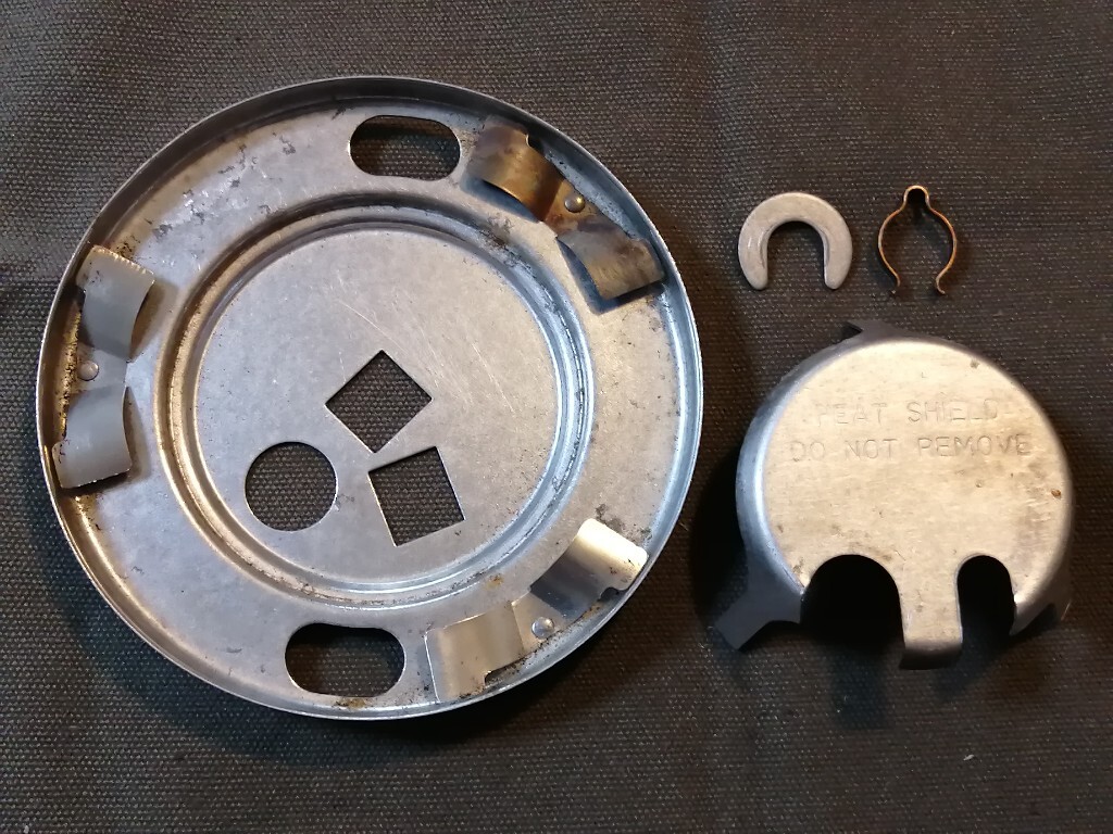 コールマンのランタン286のヒートシールド、フレームボトム、Uクリップ、スプリングクリップの4点セット(中古品)の出品です。