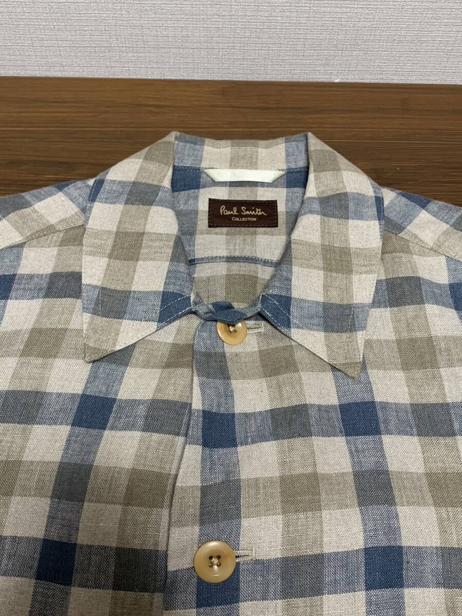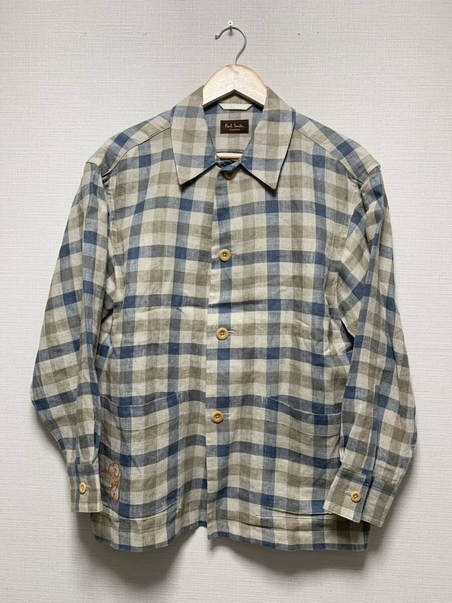 美品[Paul Smith COLLECTION] 23SS 定価77,000 トーンオントーンチェック ブルゾン リネンジャケット M 日本製 ポールスミスコレクション