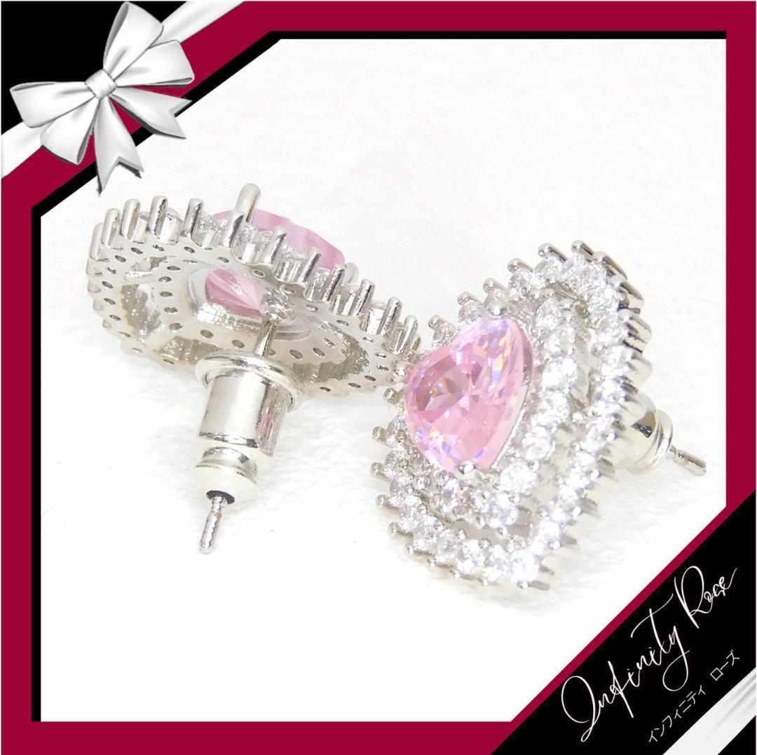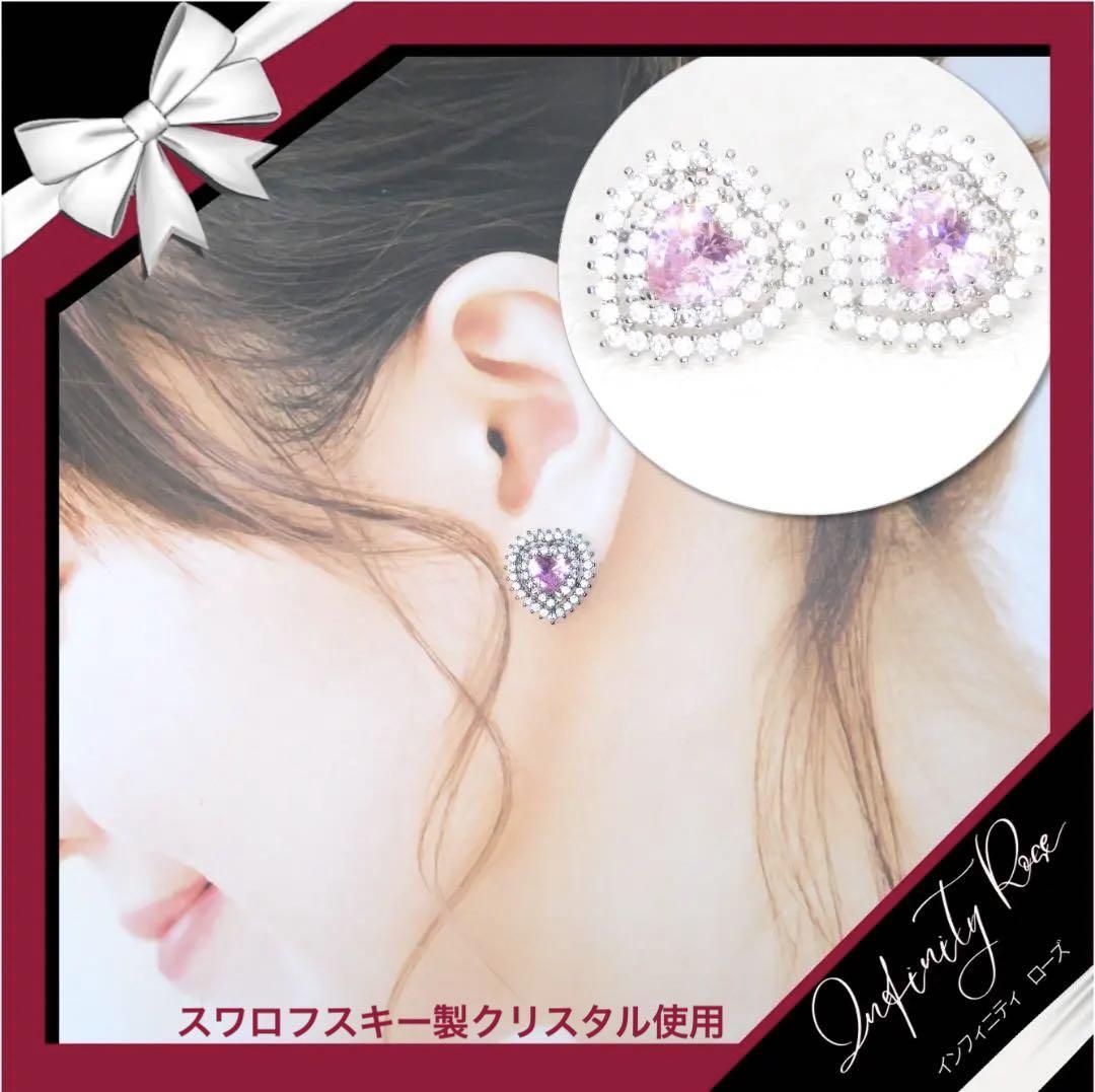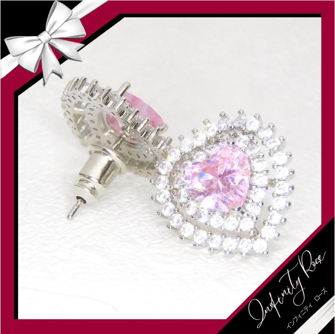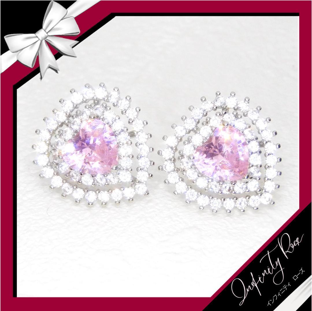 (5085)ピンクトリプルハートクリスタルピアス プレゼント 高価爪留め仕様