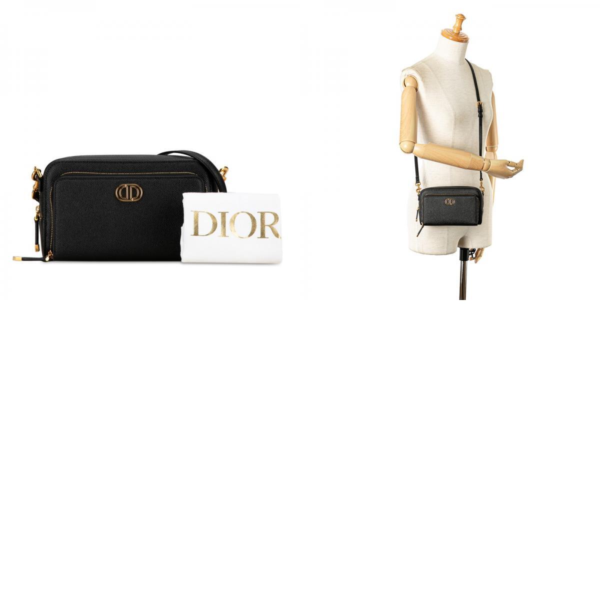 ディオール カロ ダブルポーチ 斜め掛け ショルダーバッグ ブラック レザー レディース Dior 【中古】