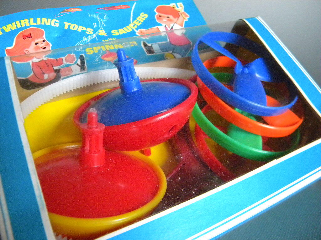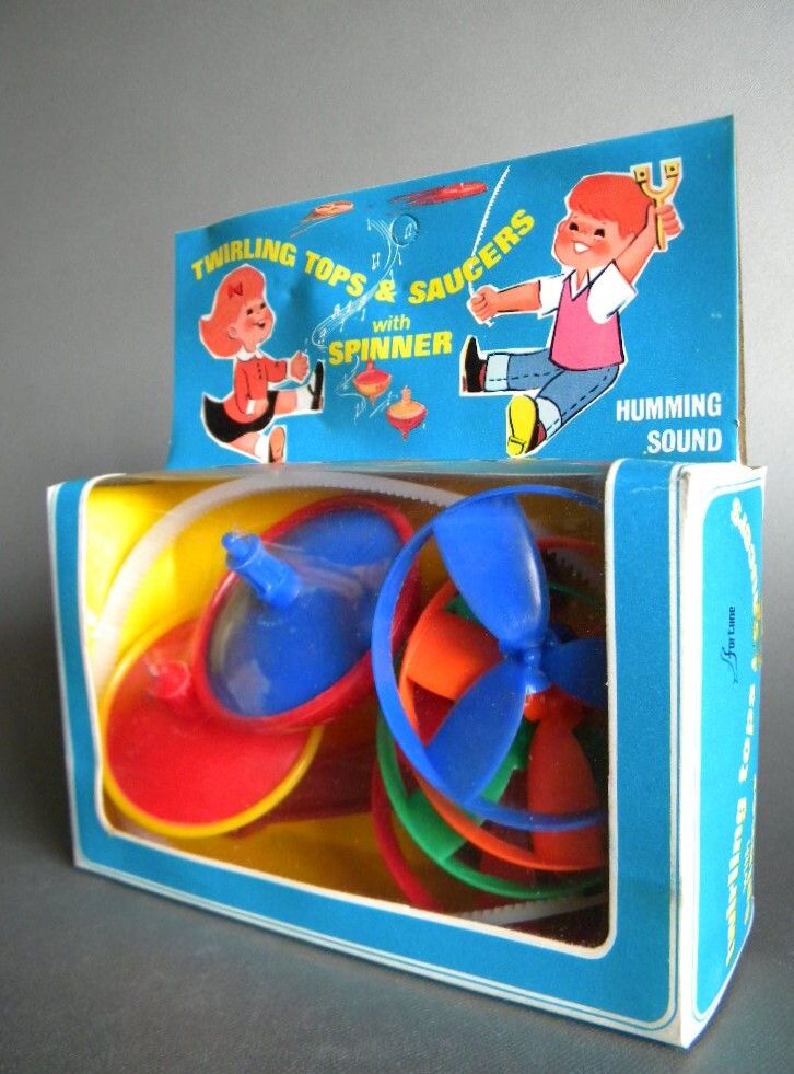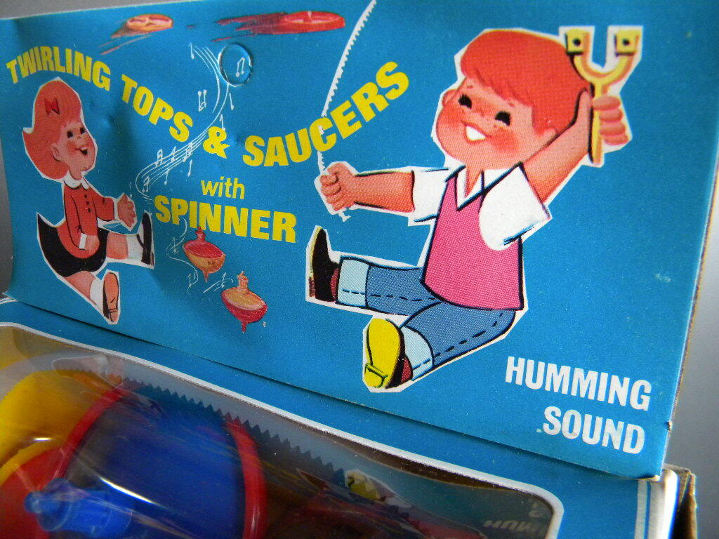 当時物 ★★ホンコン製 70`design スペース変わりコマ 独楽 twiring&saucers spinner hummig 廻る 鳴る 飛ぶ !! ★★未使用デッドストック