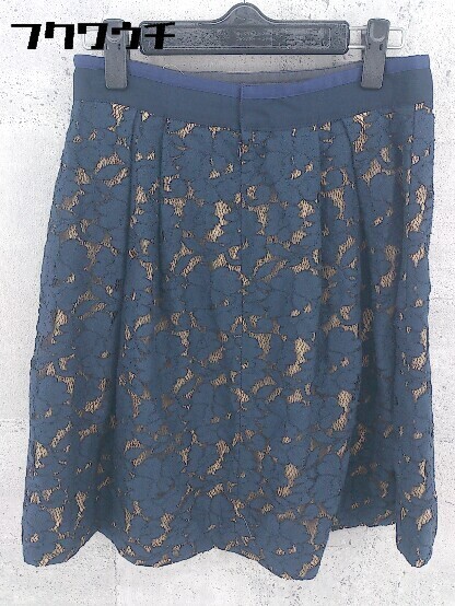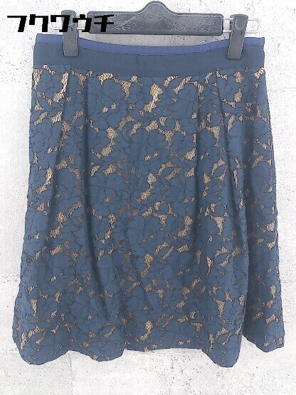 ◇ La TOTALITE ラ トータリテ 総柄 レース 膝丈 スカート サイズ38 ネイビー レディース